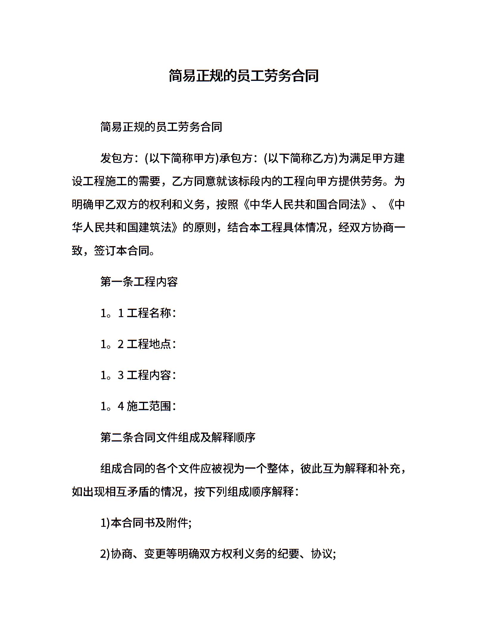 简易正规的员工劳务合同