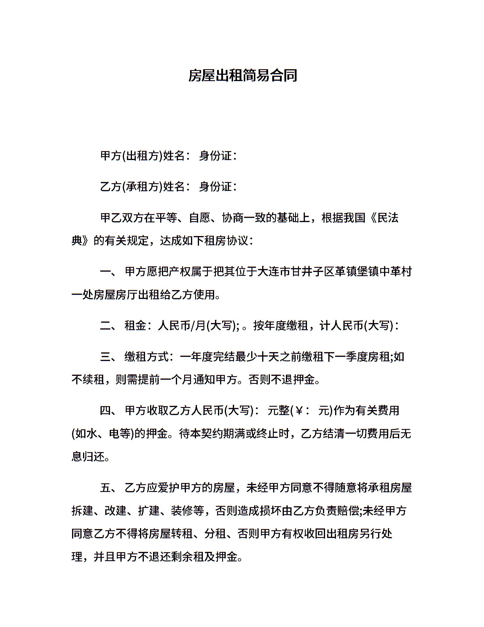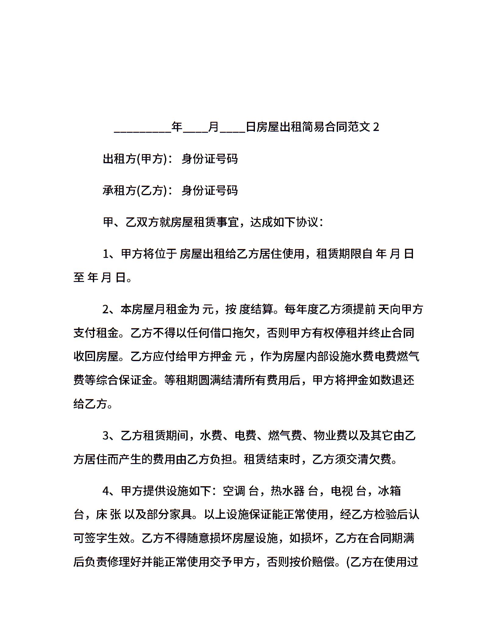 房屋出租简易合同
