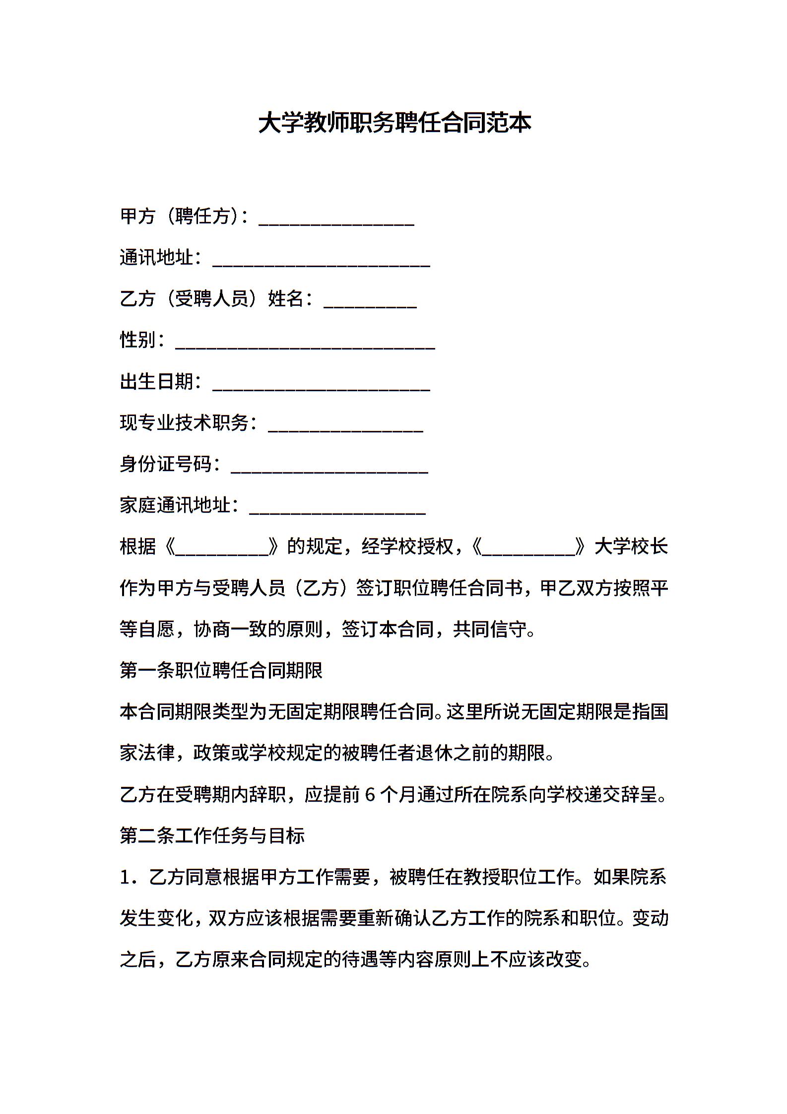 大学教师职务聘任合同范本