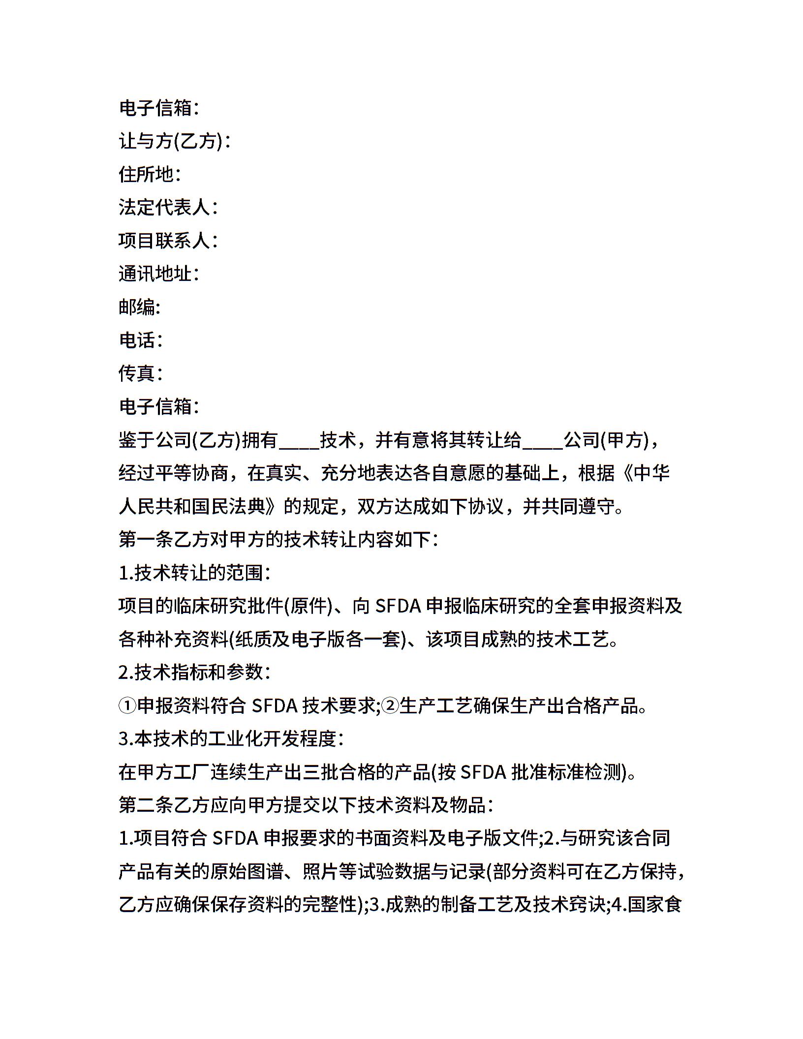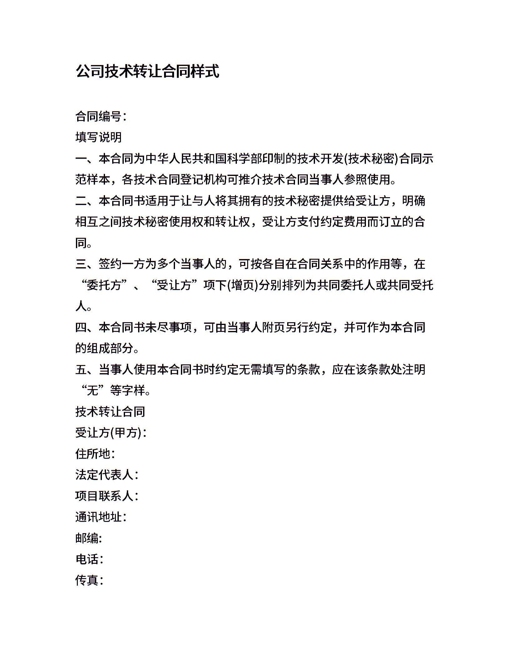 公司技术转让合同样式