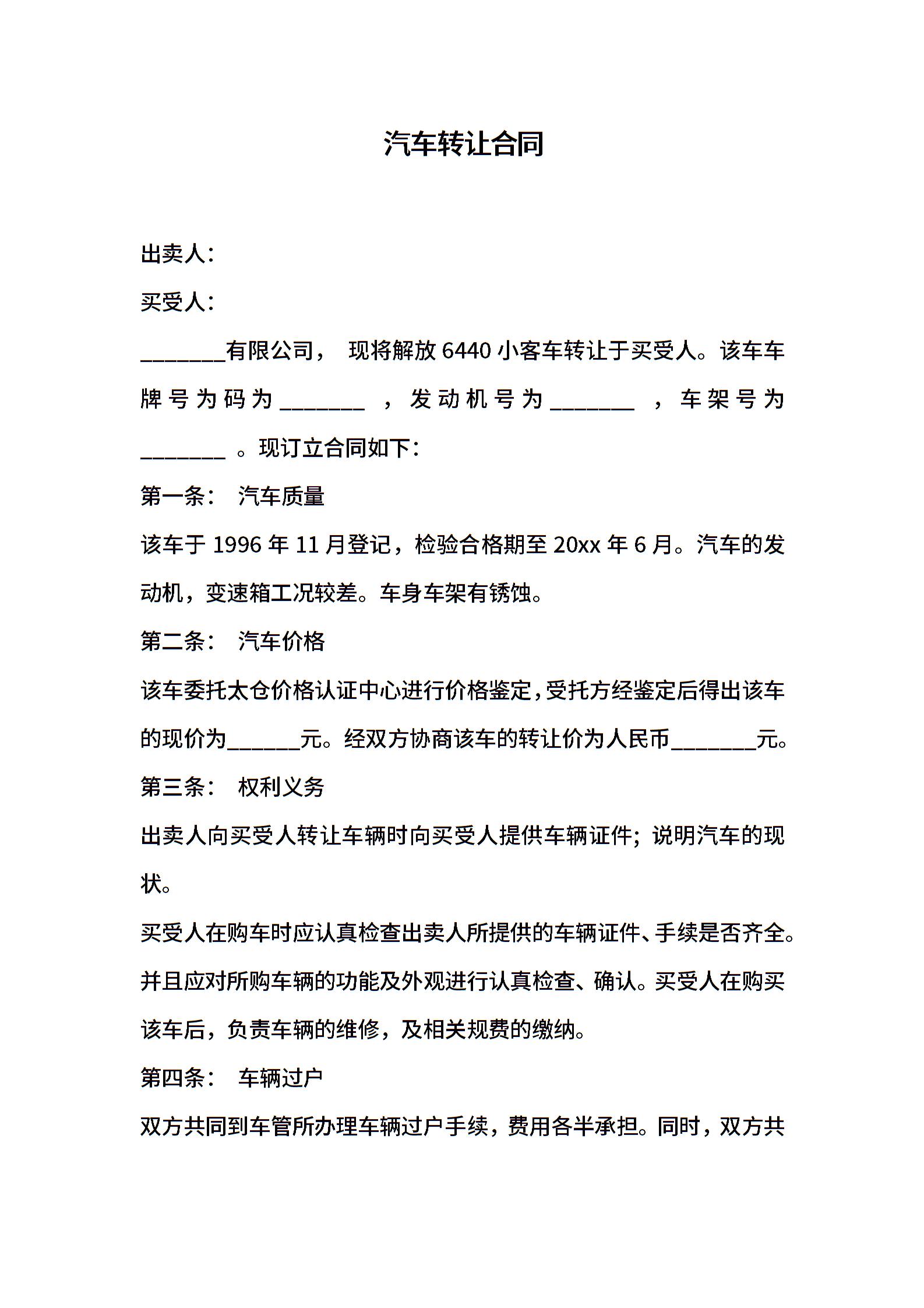 汽车转让合同 (2)