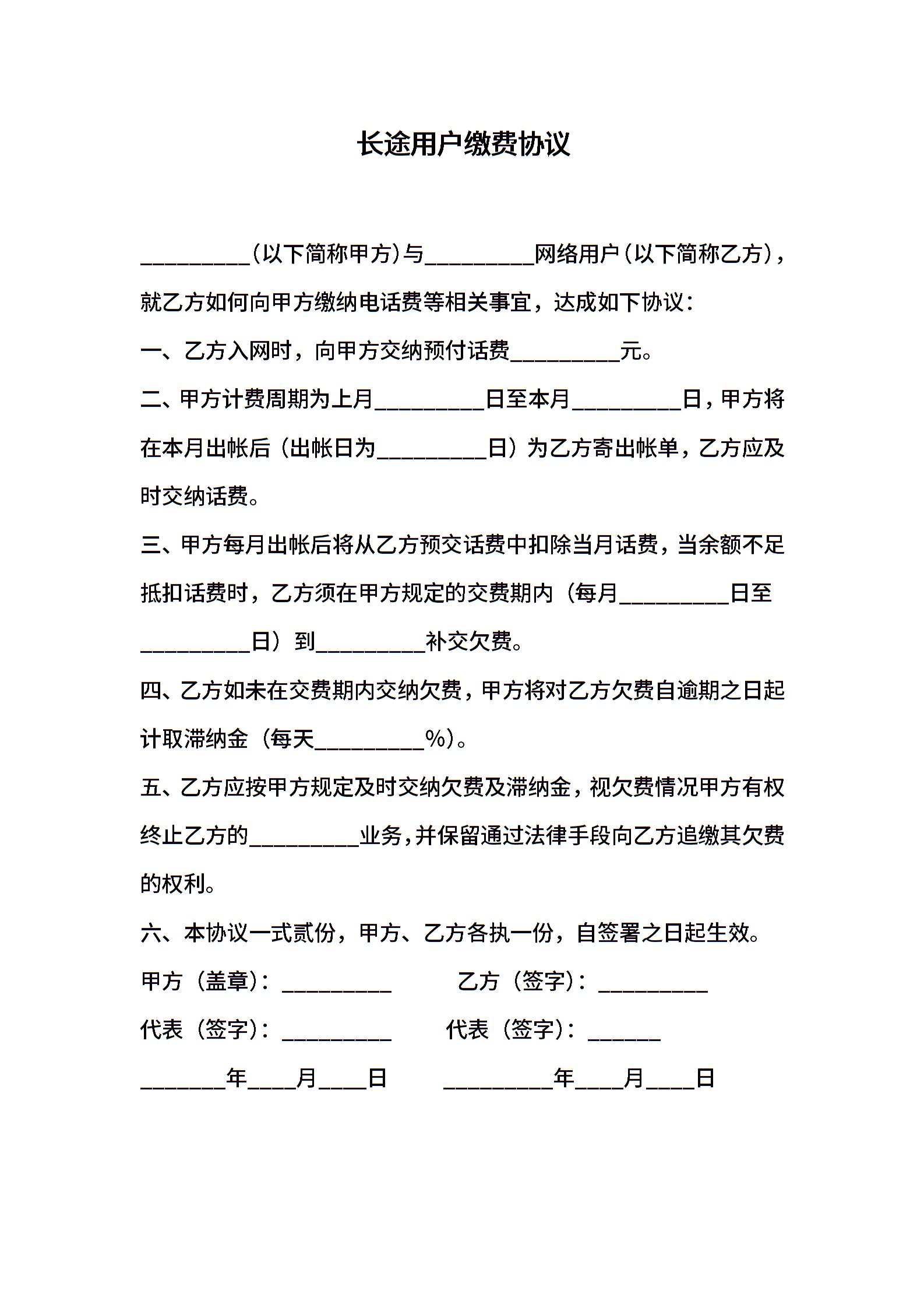 长途用户缴费协议