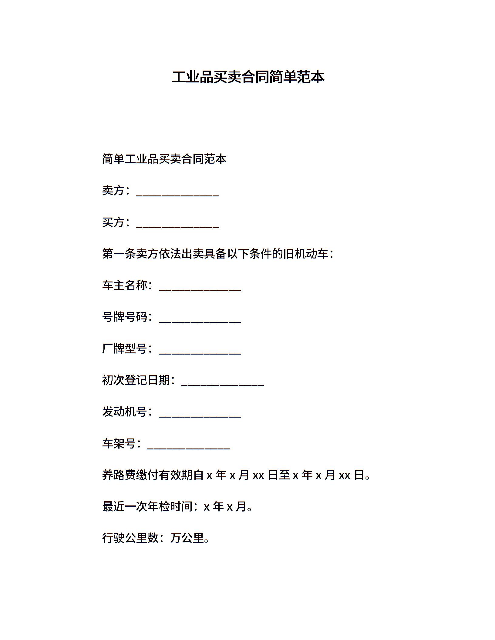 工业品买卖合同简单范本