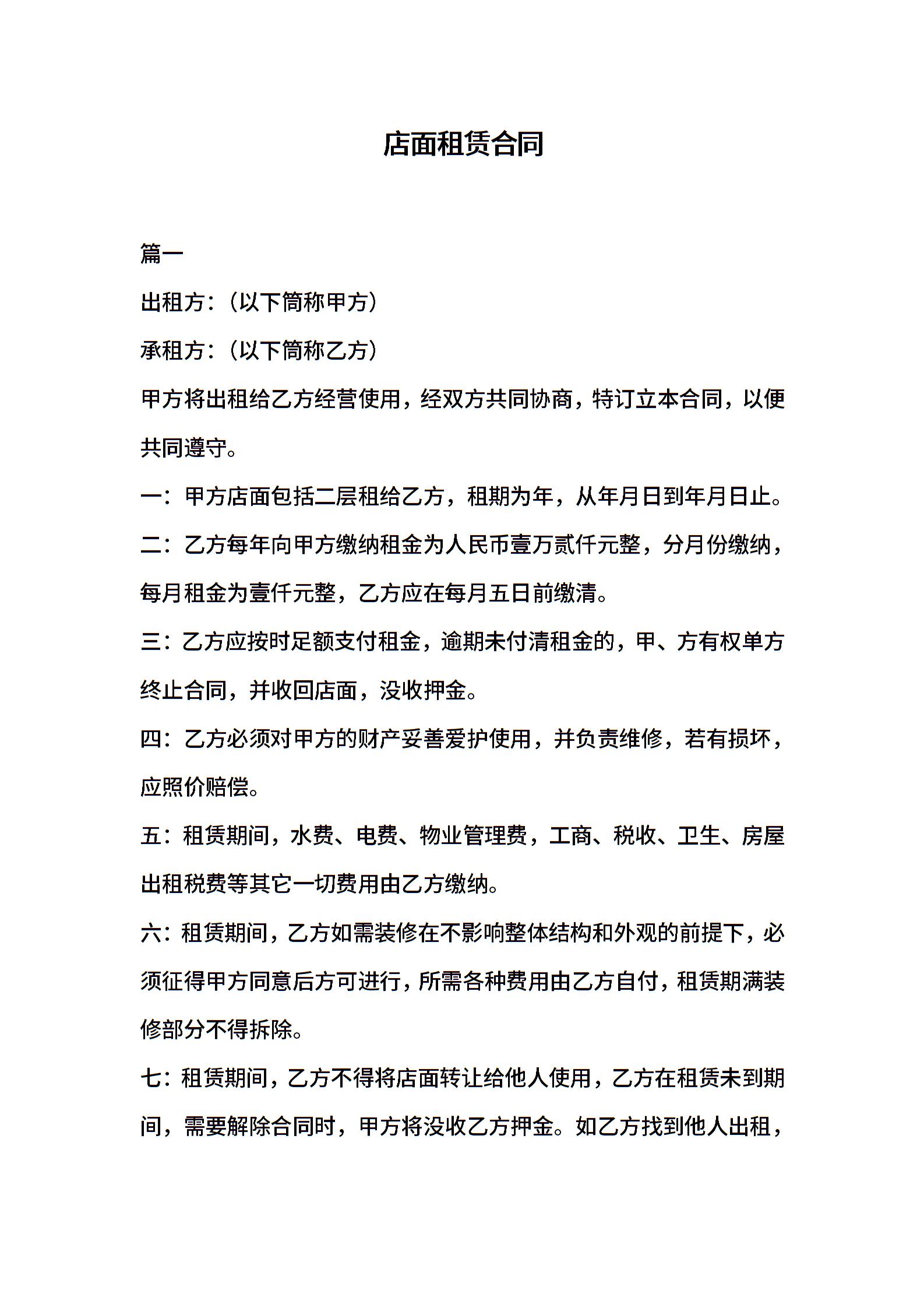 店面租赁合同 (3)