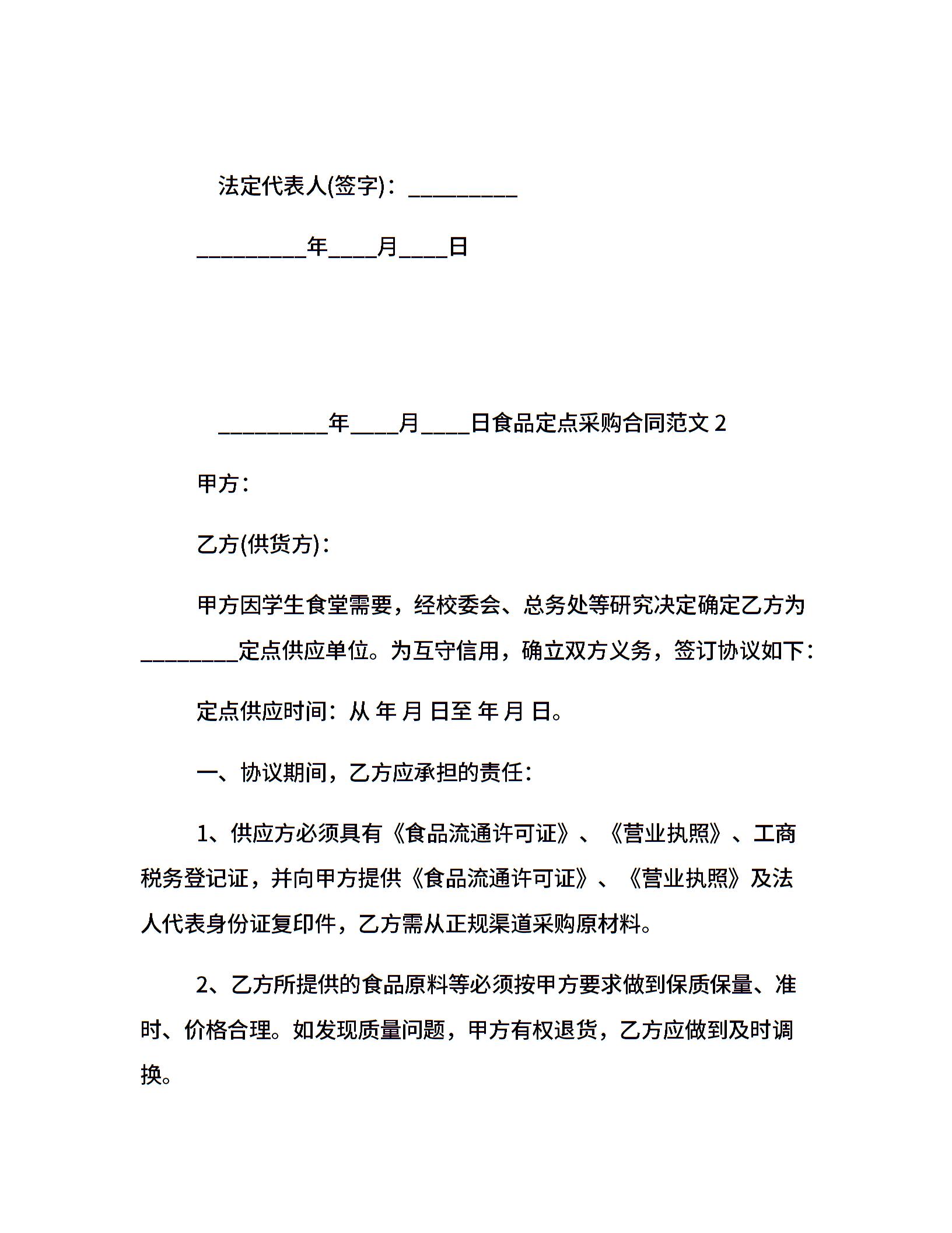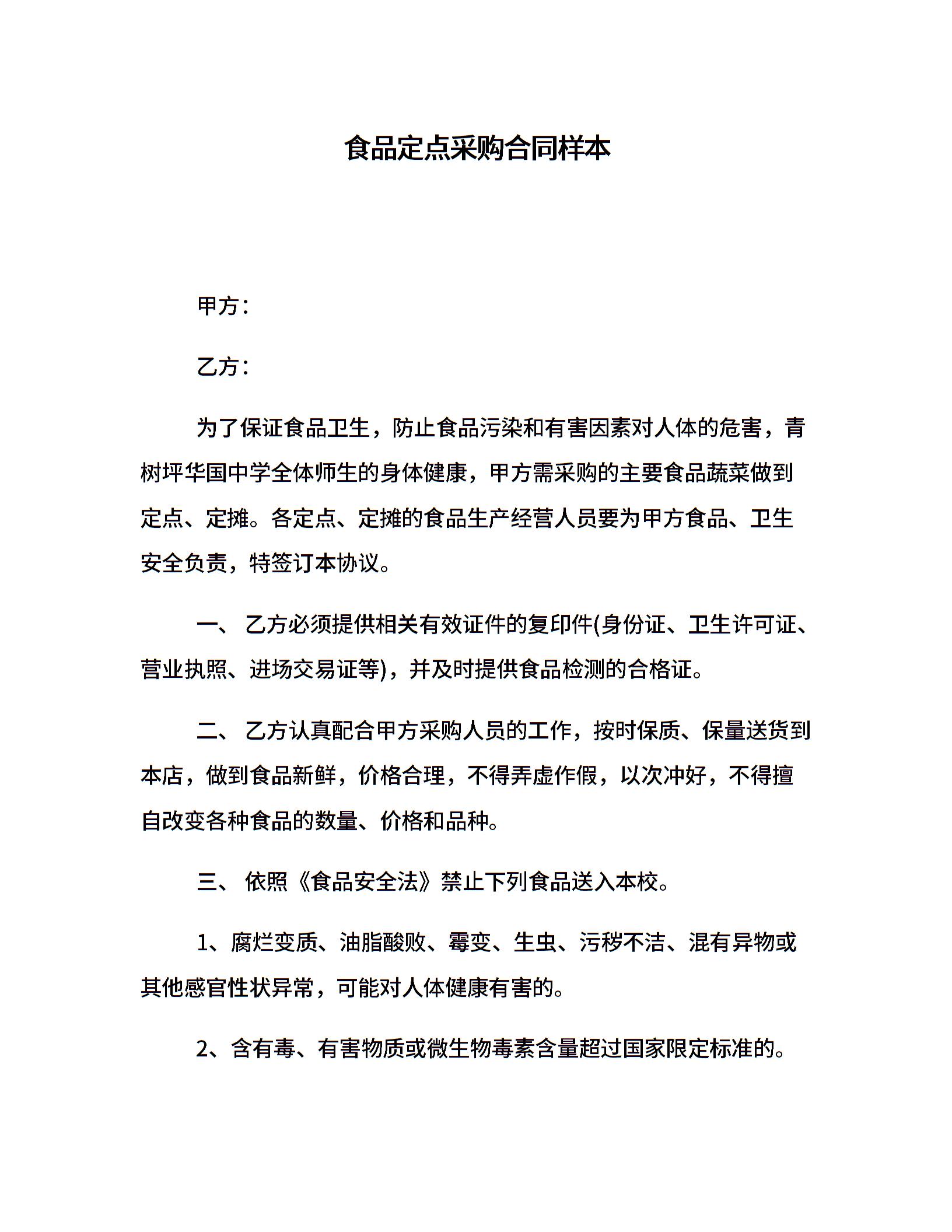 食品定点采购合同样本