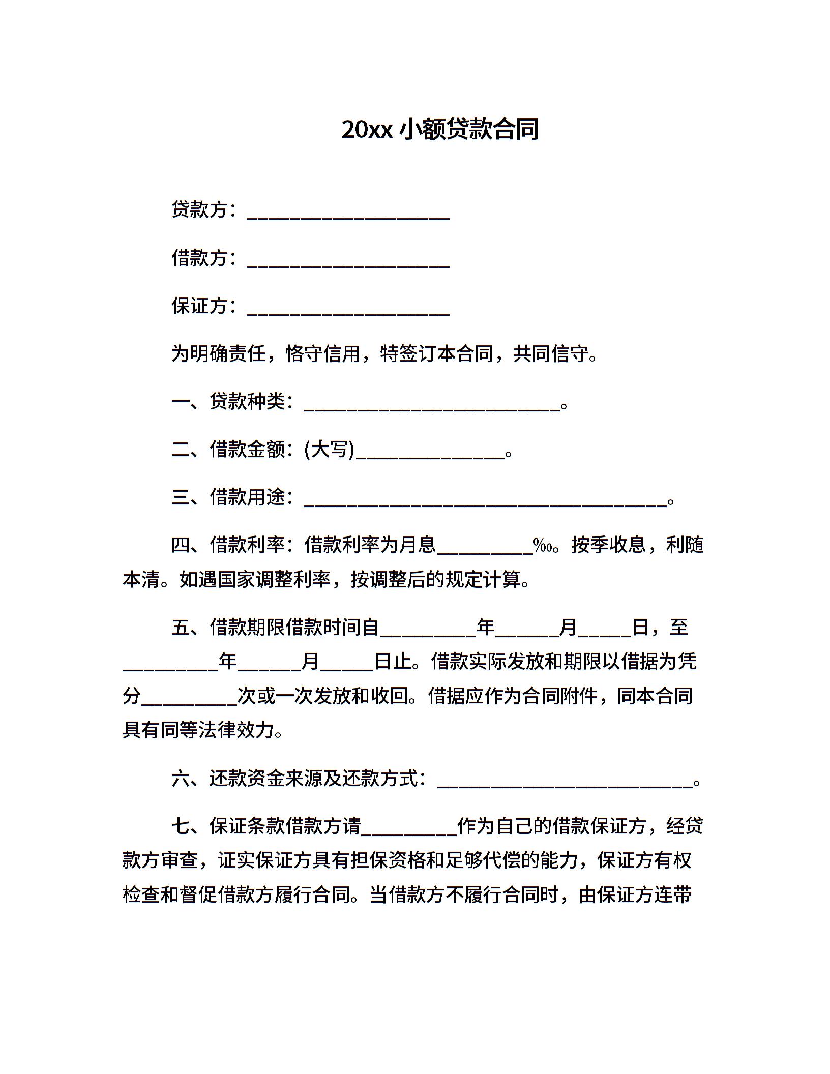 20xx小额贷款合同1