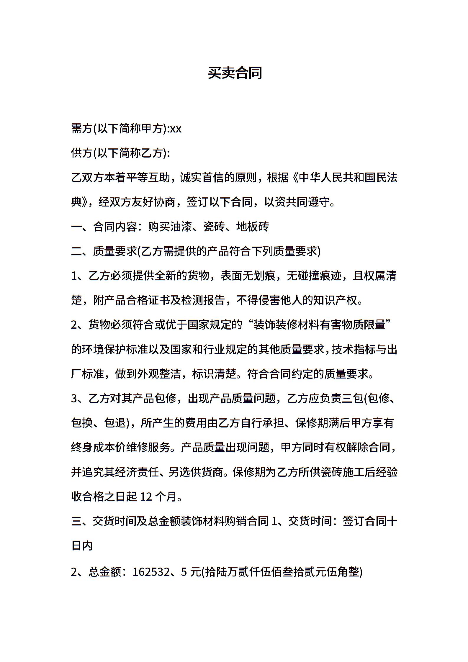 当前位置:量子办公 > 合同模板 > 买卖合同 >