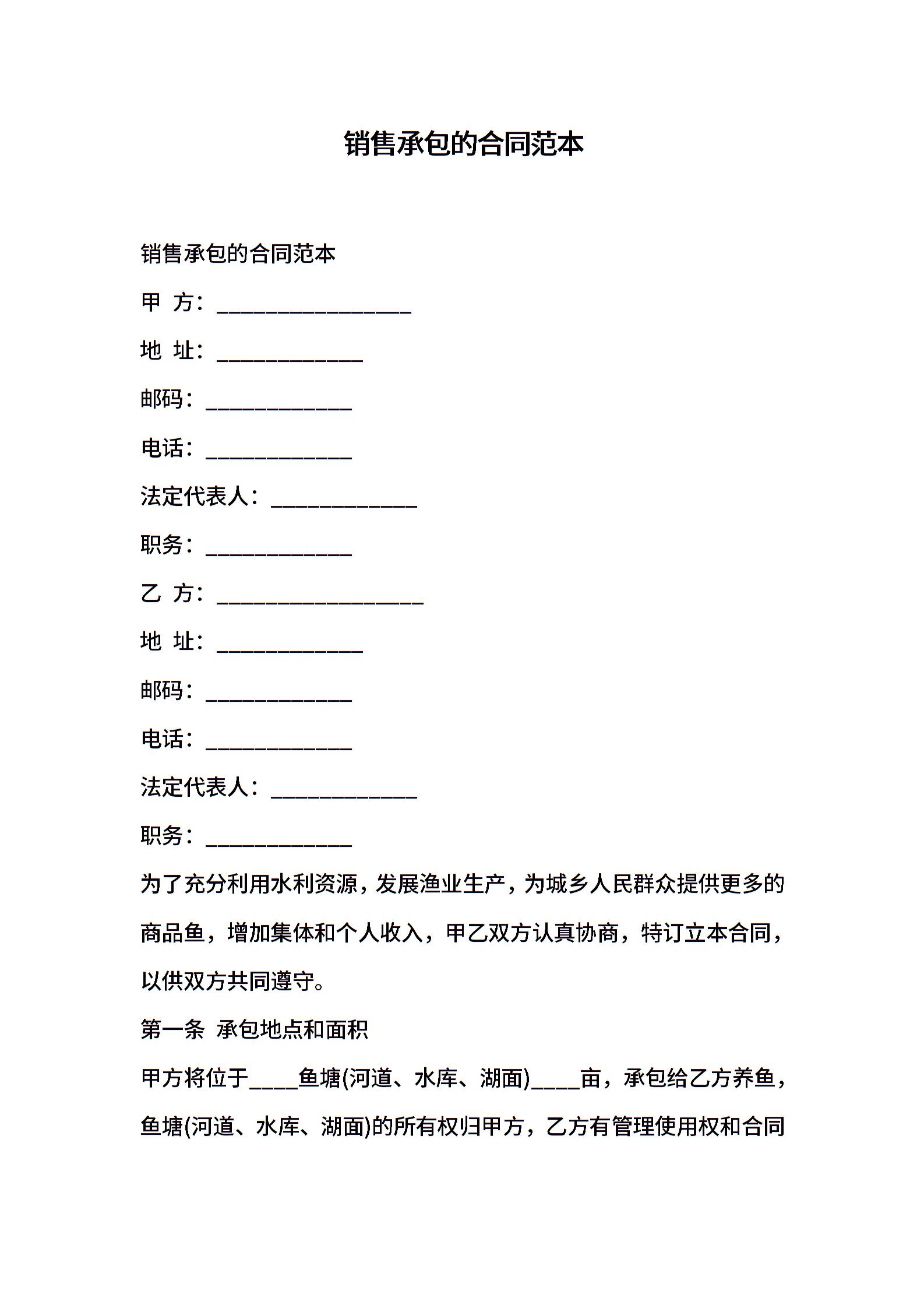 销售承包的合同范本