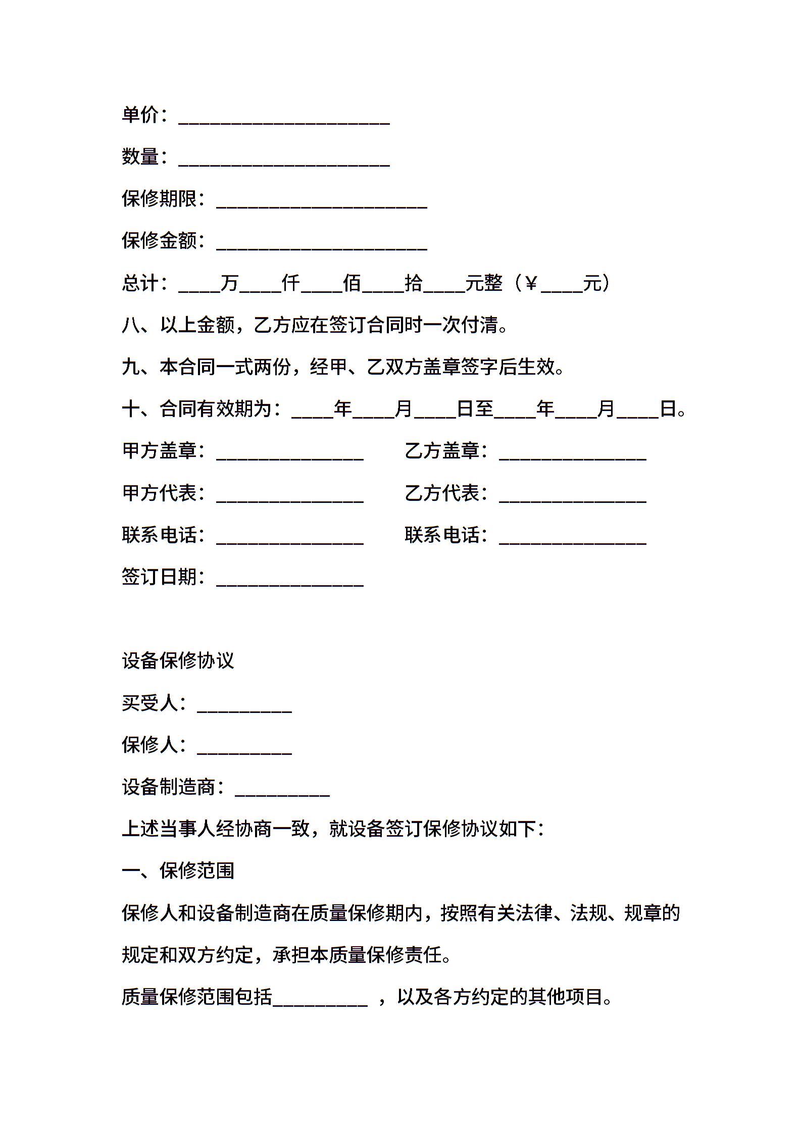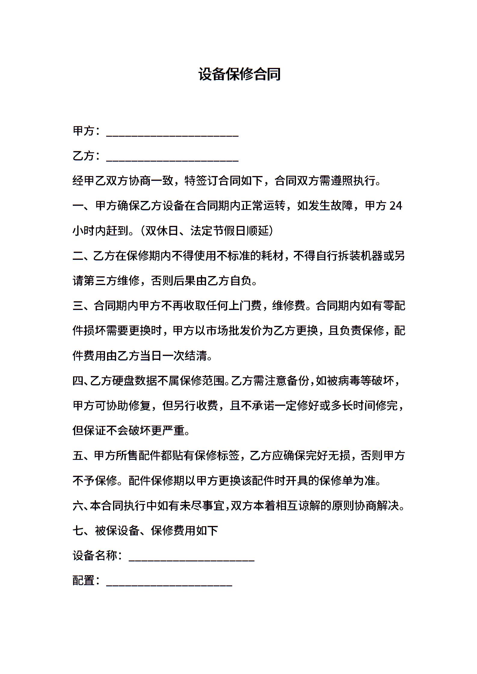 设备保修合同 (2)