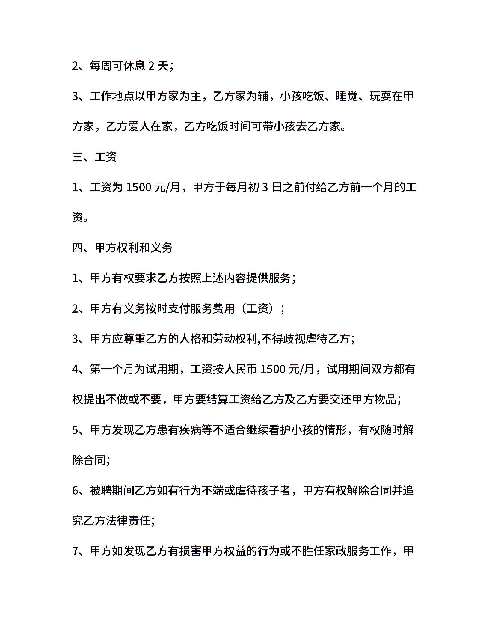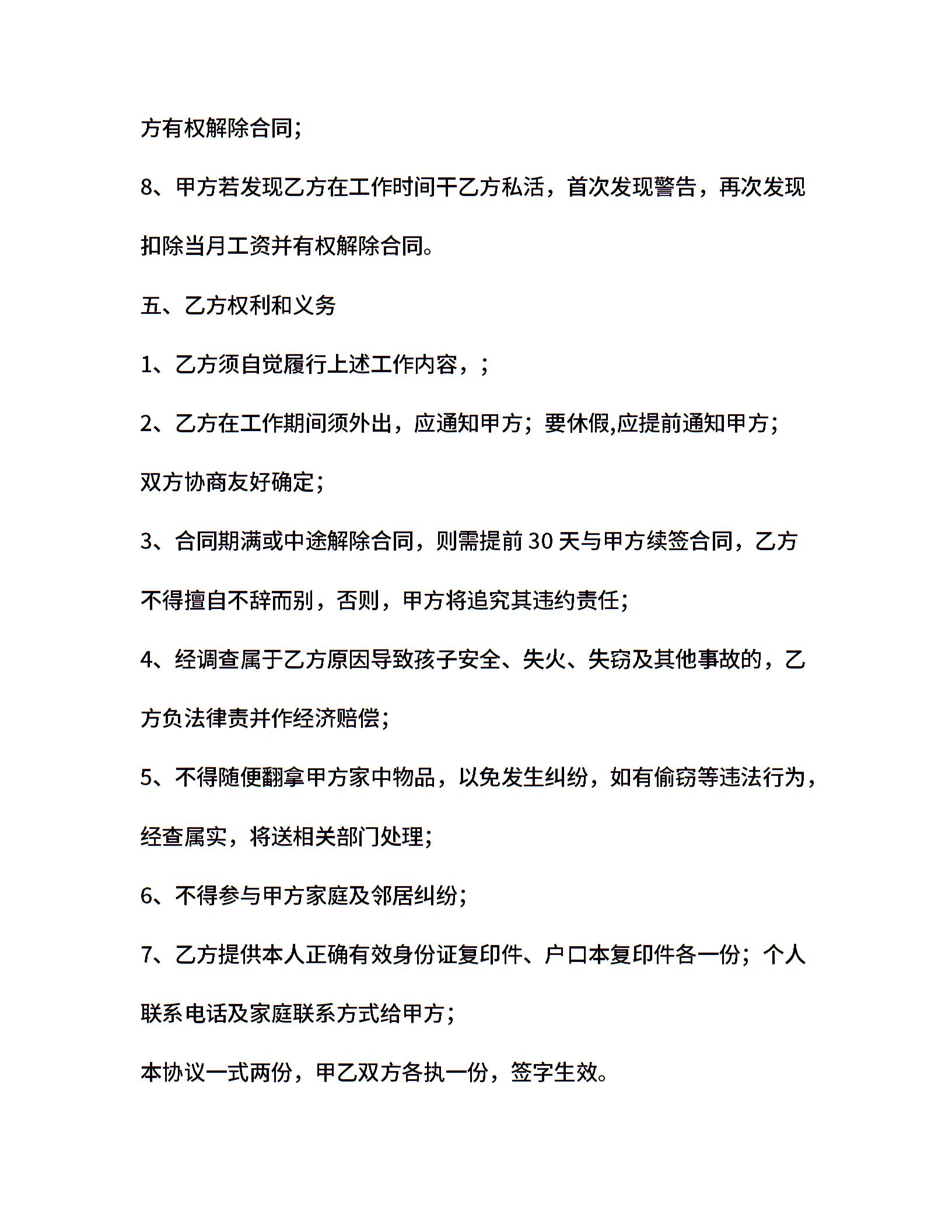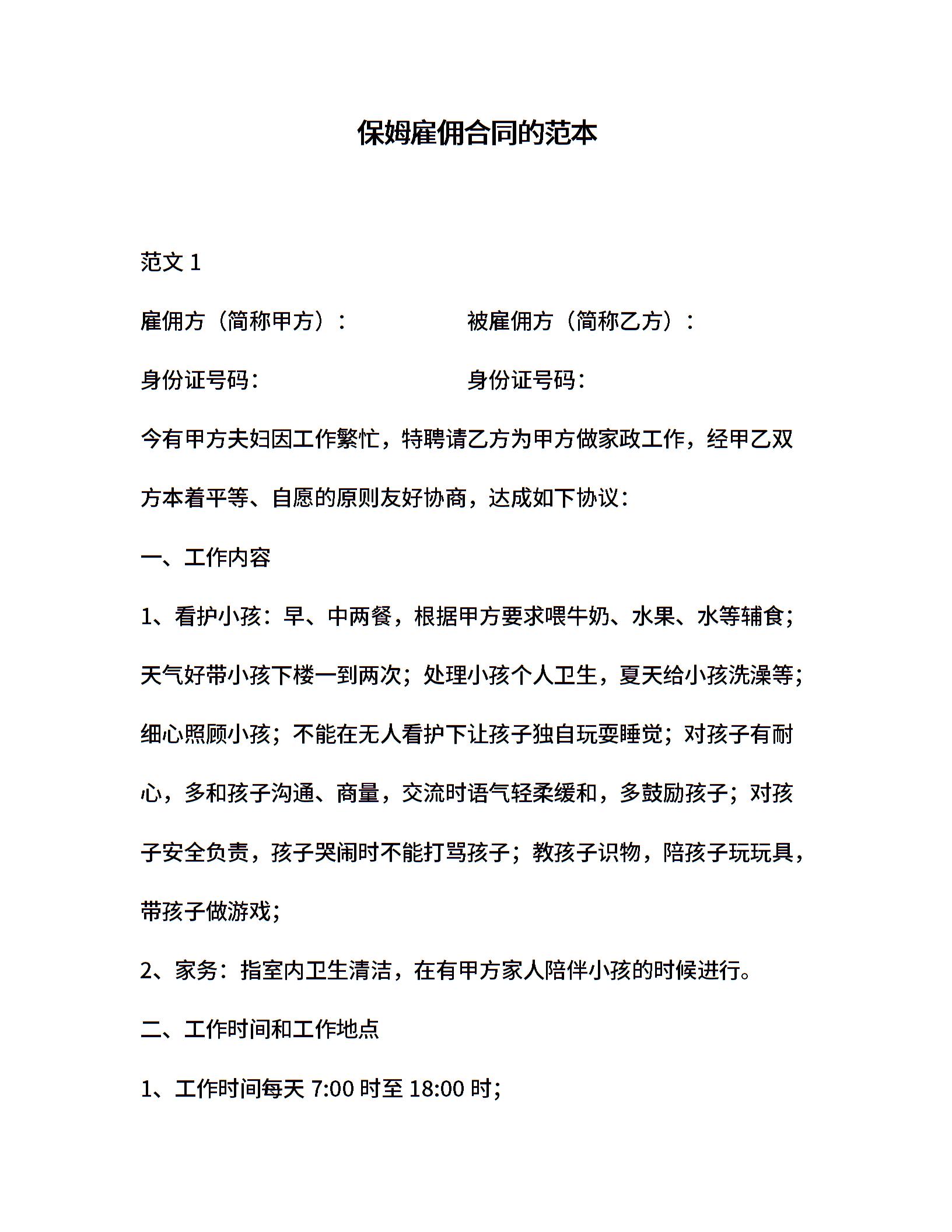 保姆雇佣合同的范本