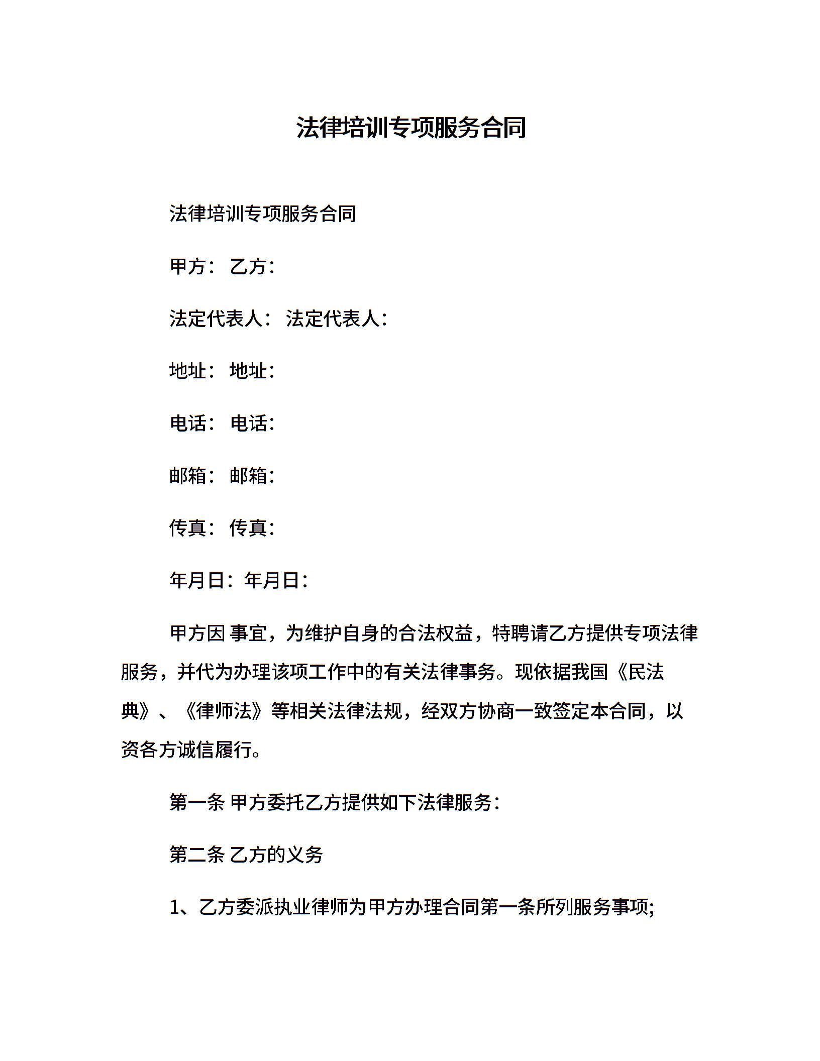 法律培训专项服务合同