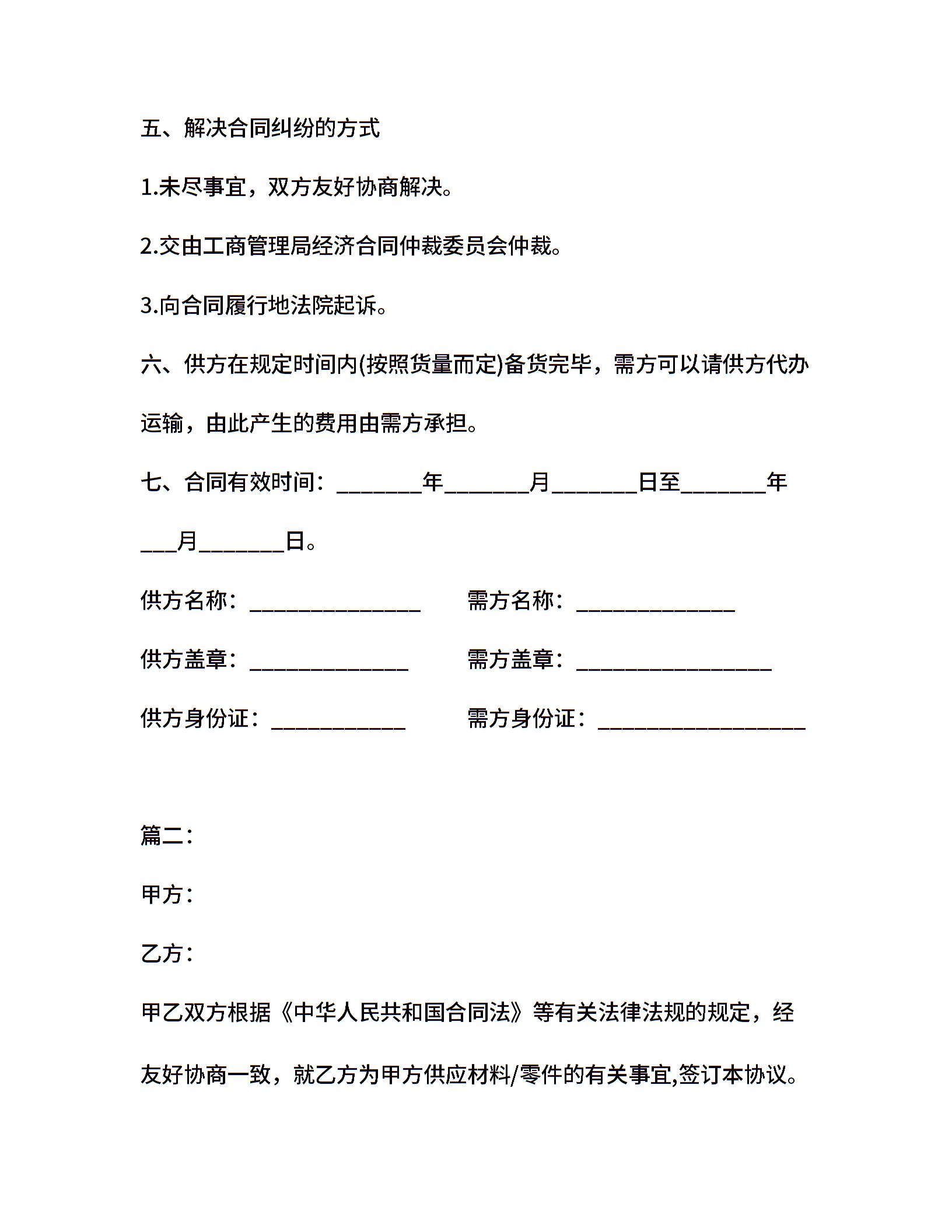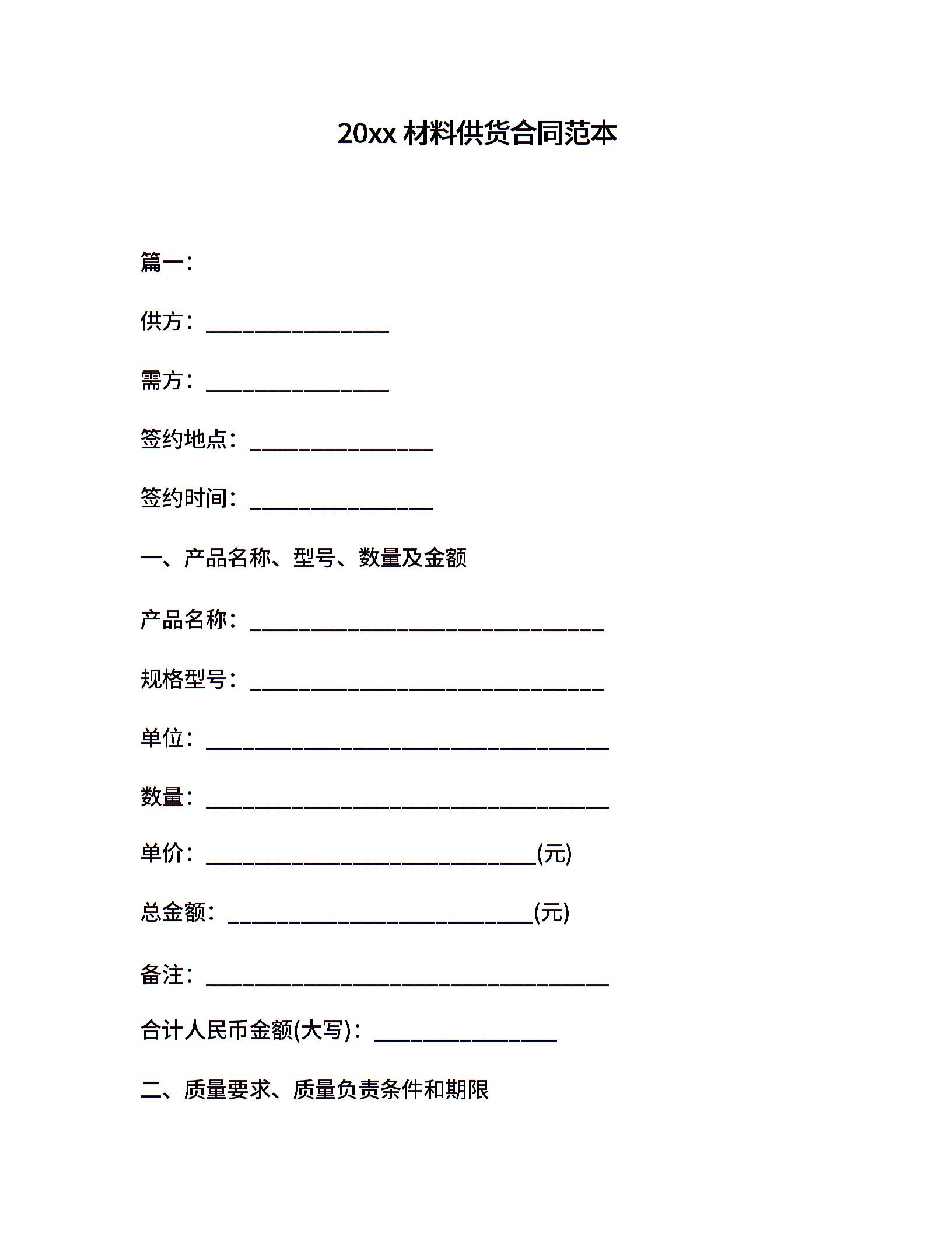 20xx材料供货合同范本