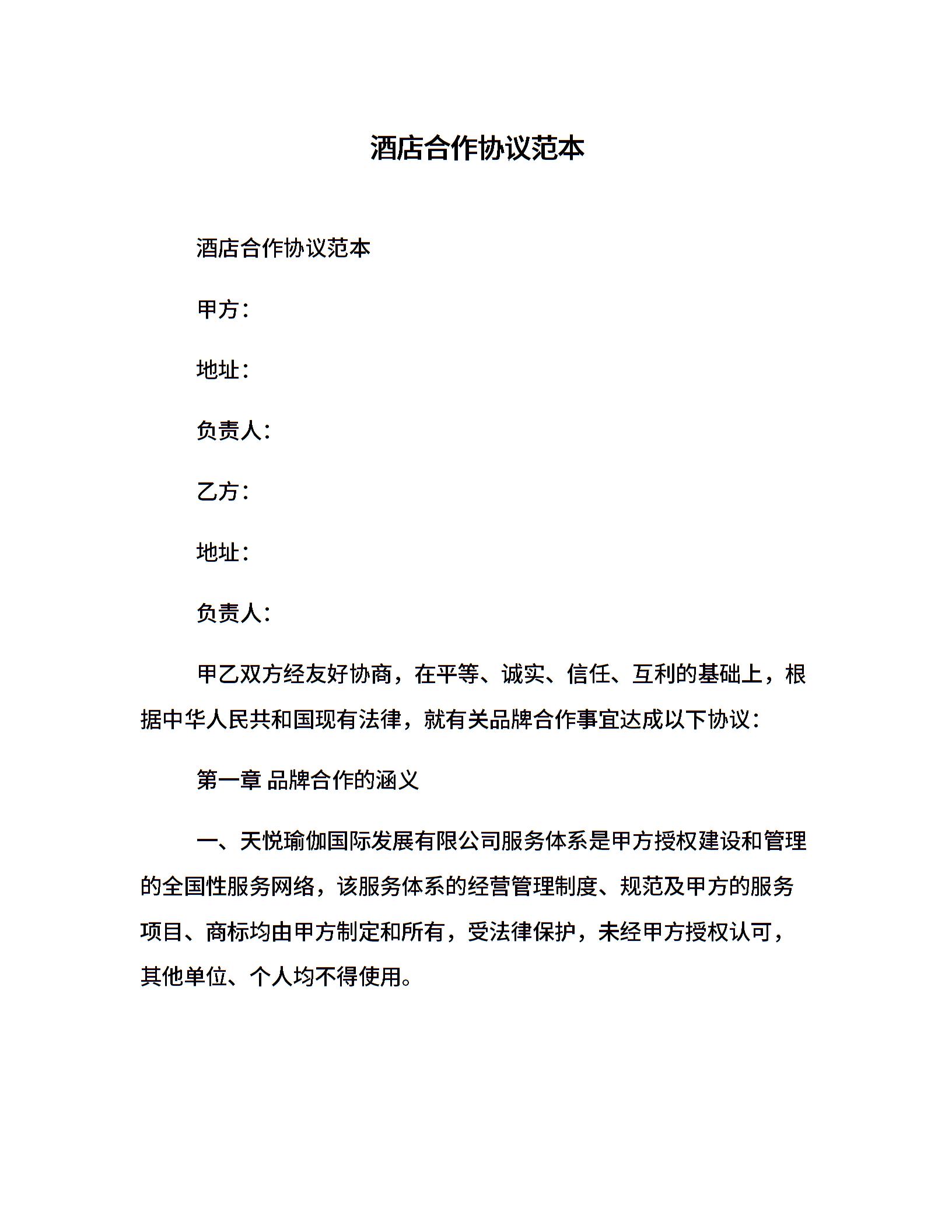 酒店合作协议范本