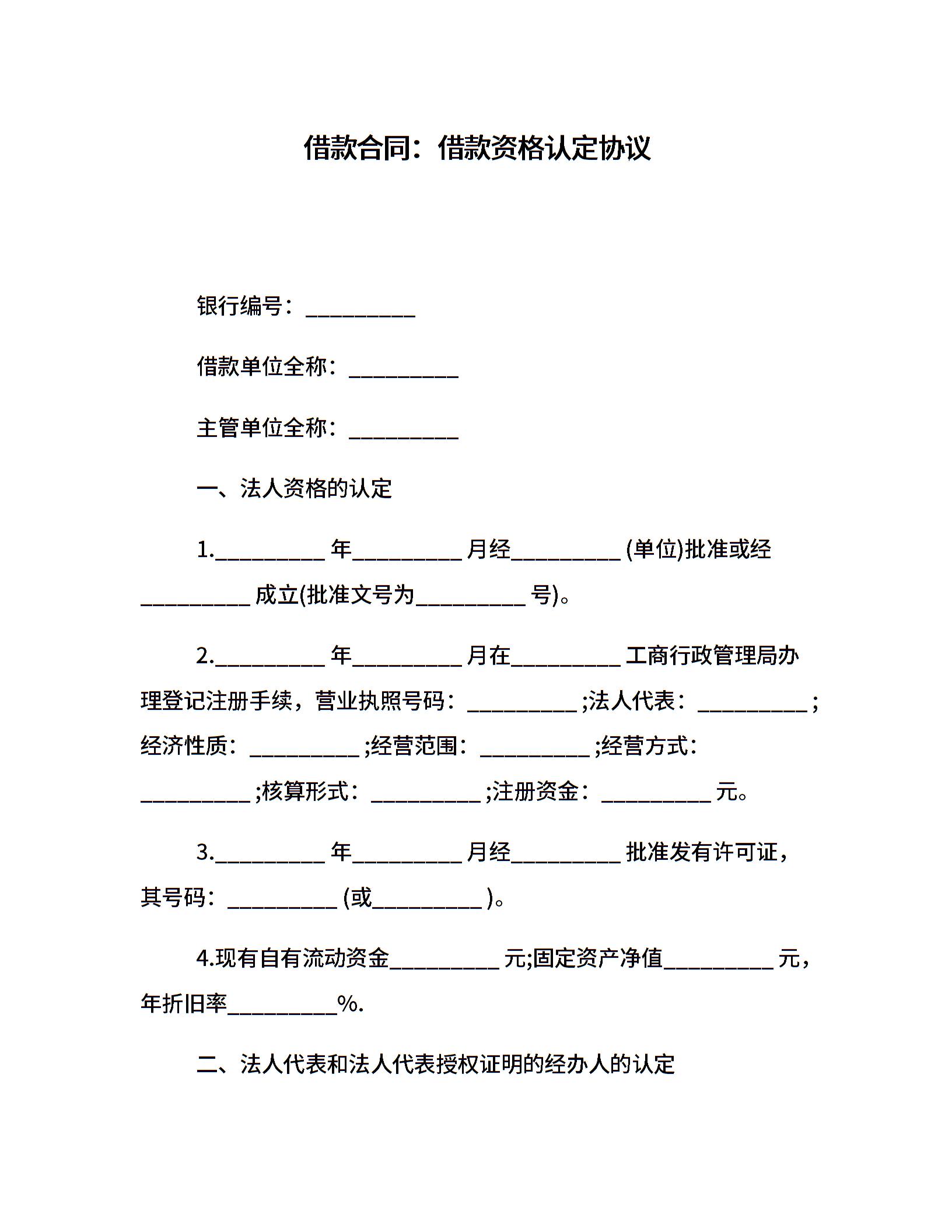 借款合同:借款资格认定协议