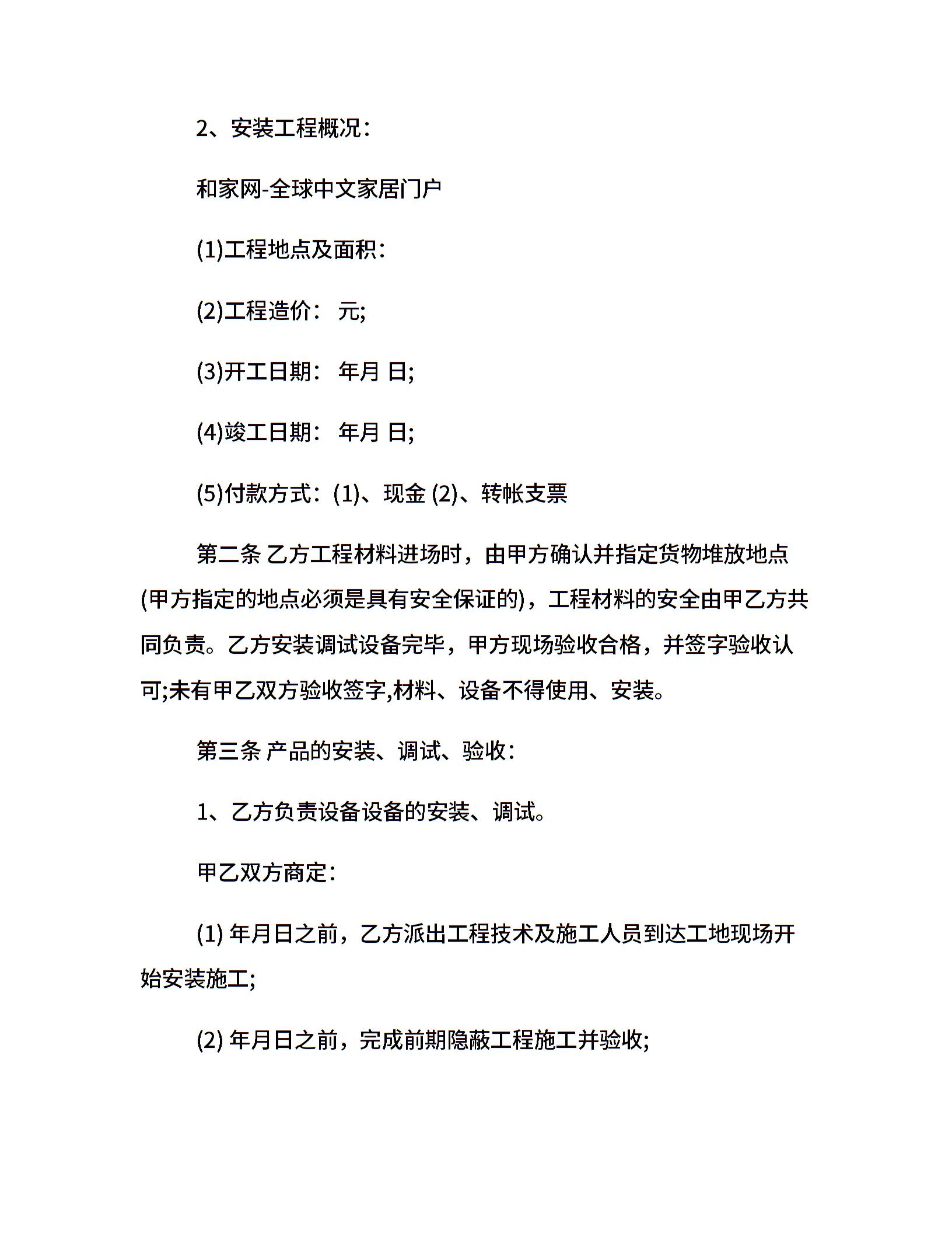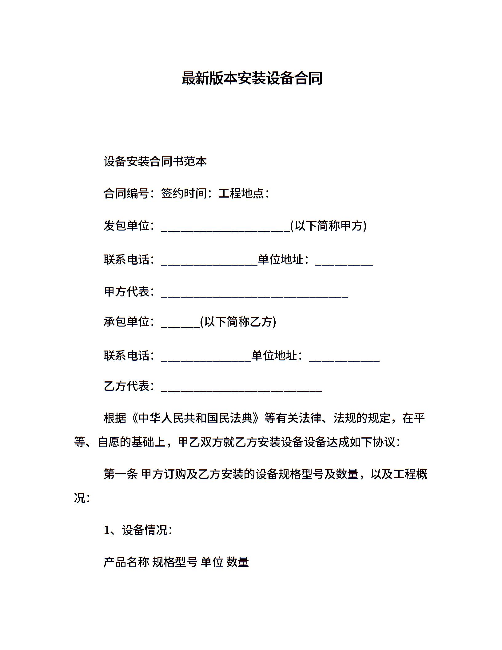 最新版本安装设备合同