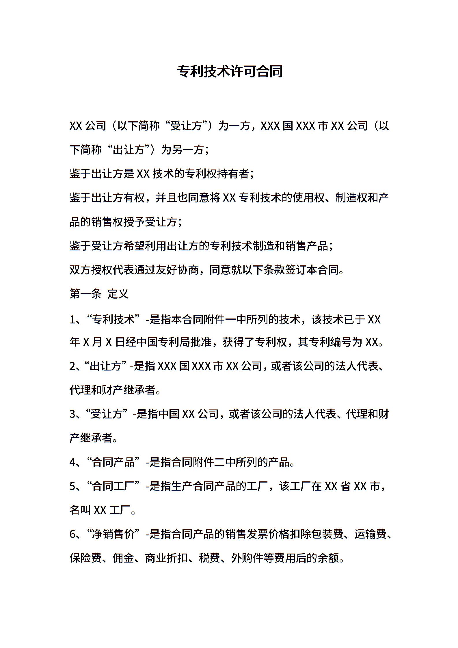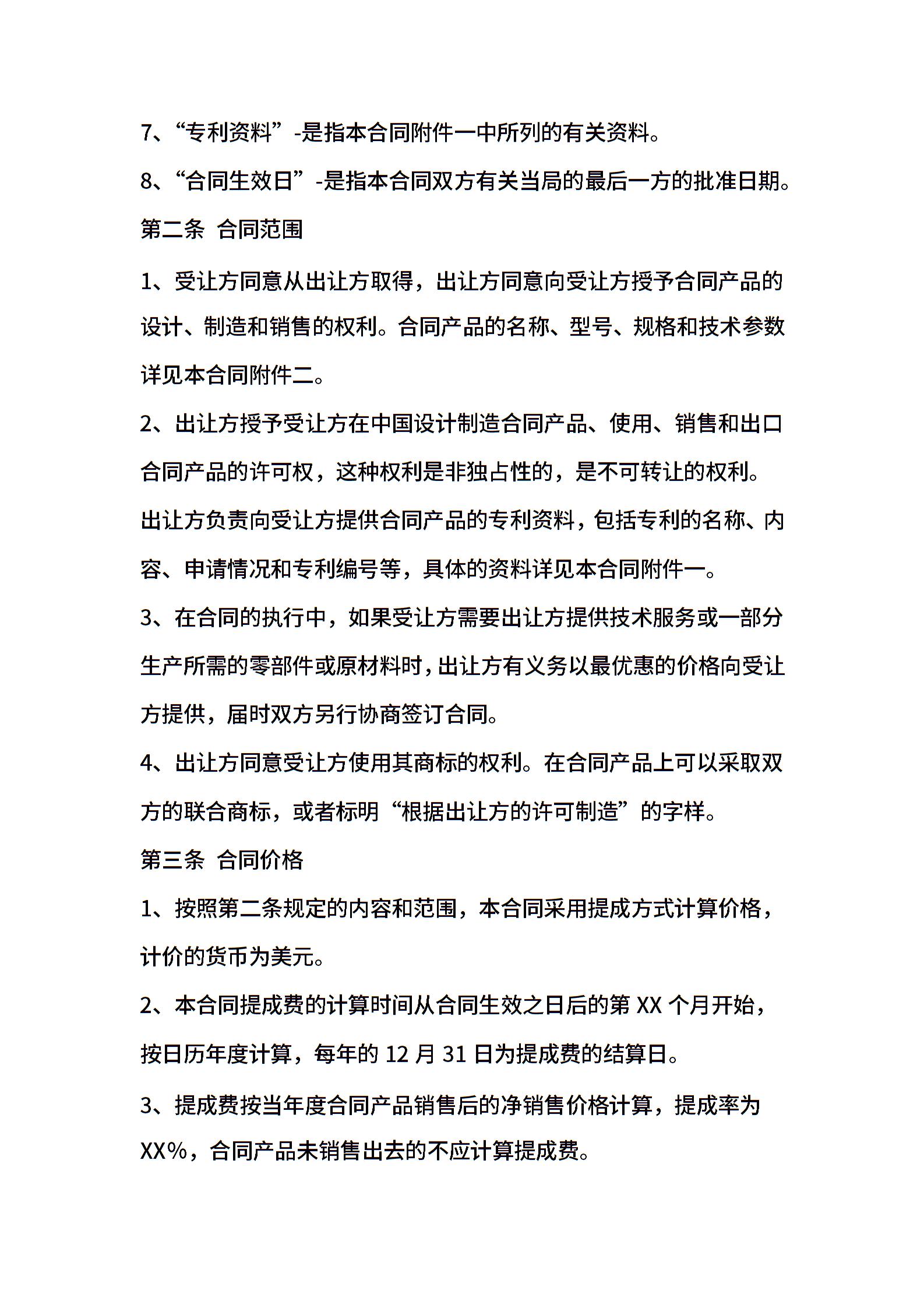 专利技术许可合同