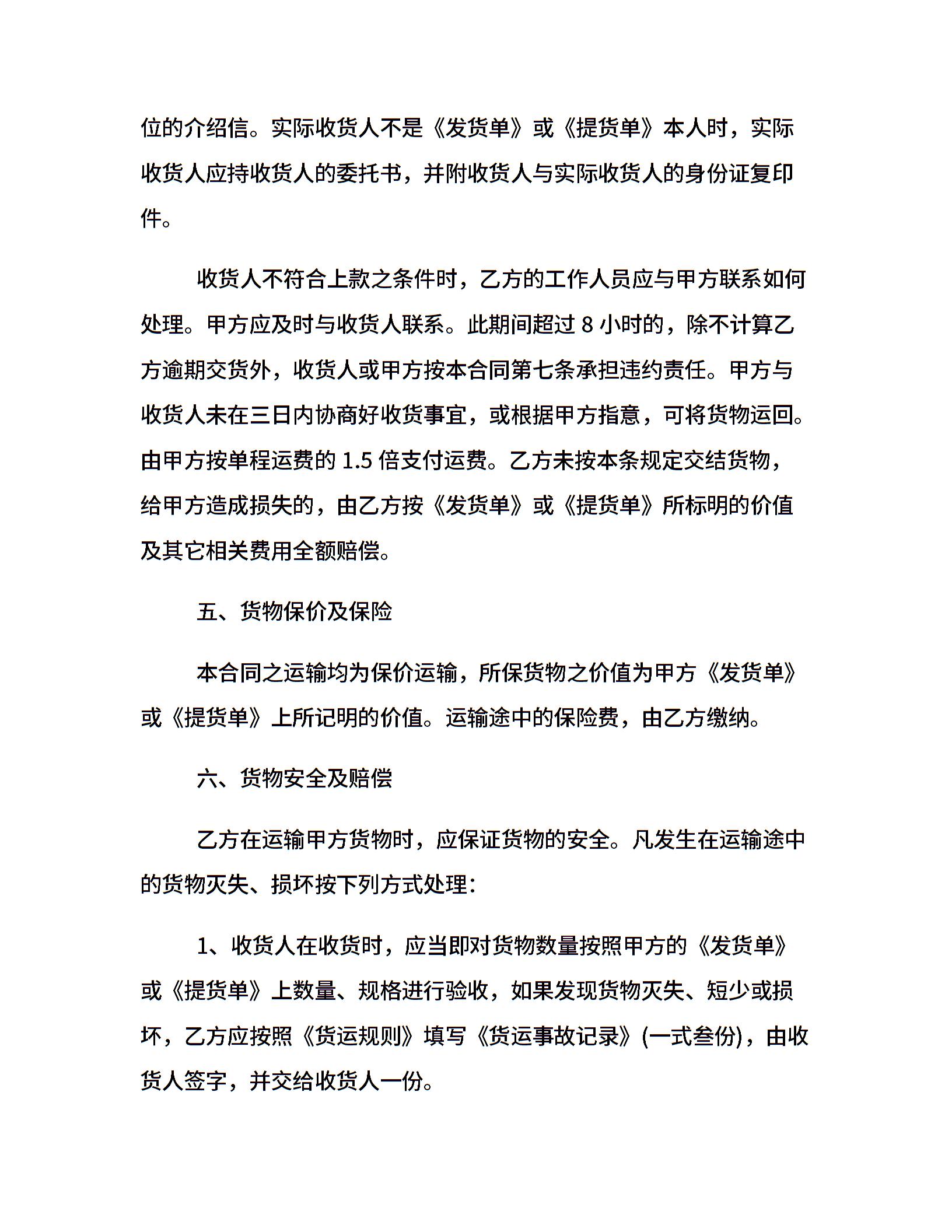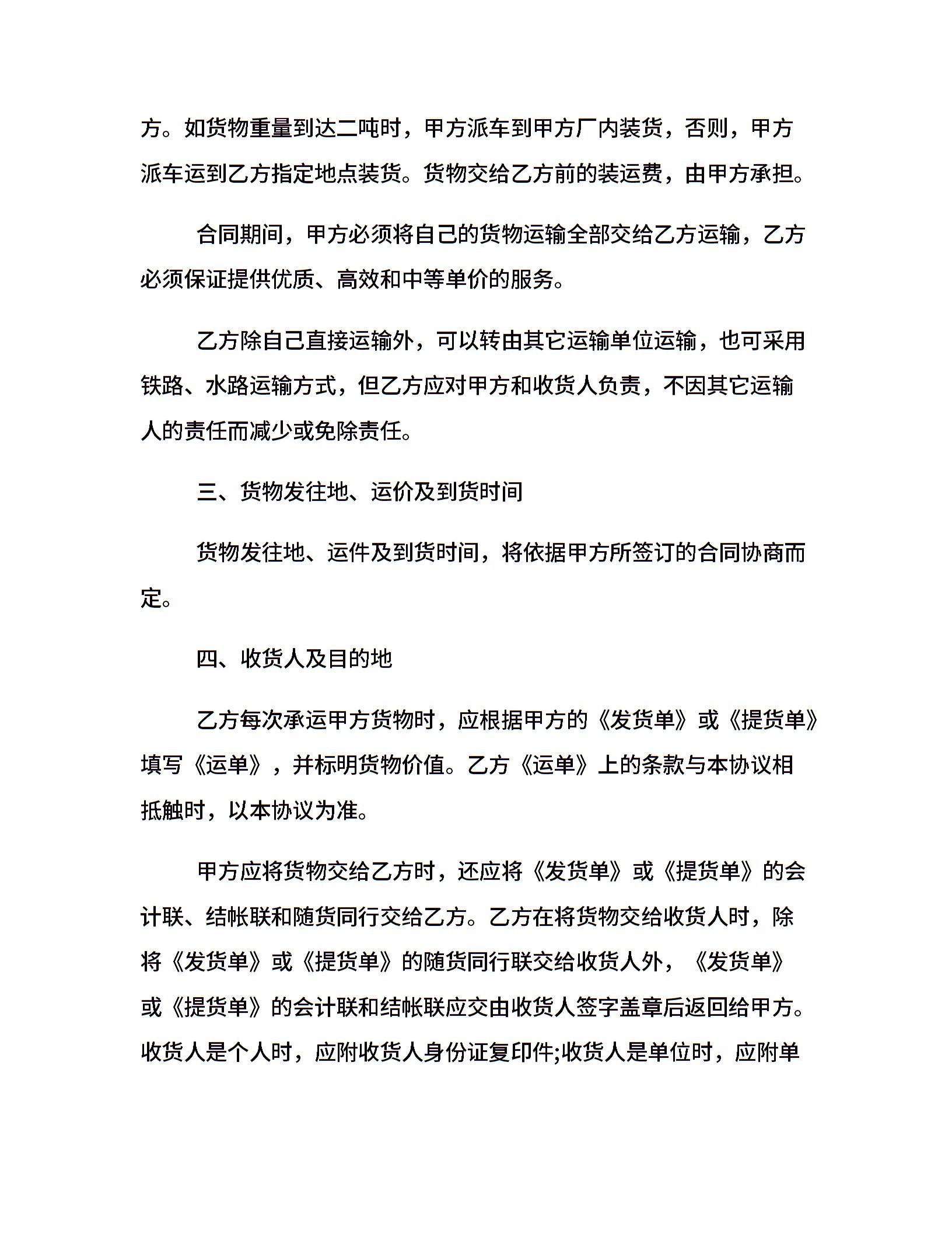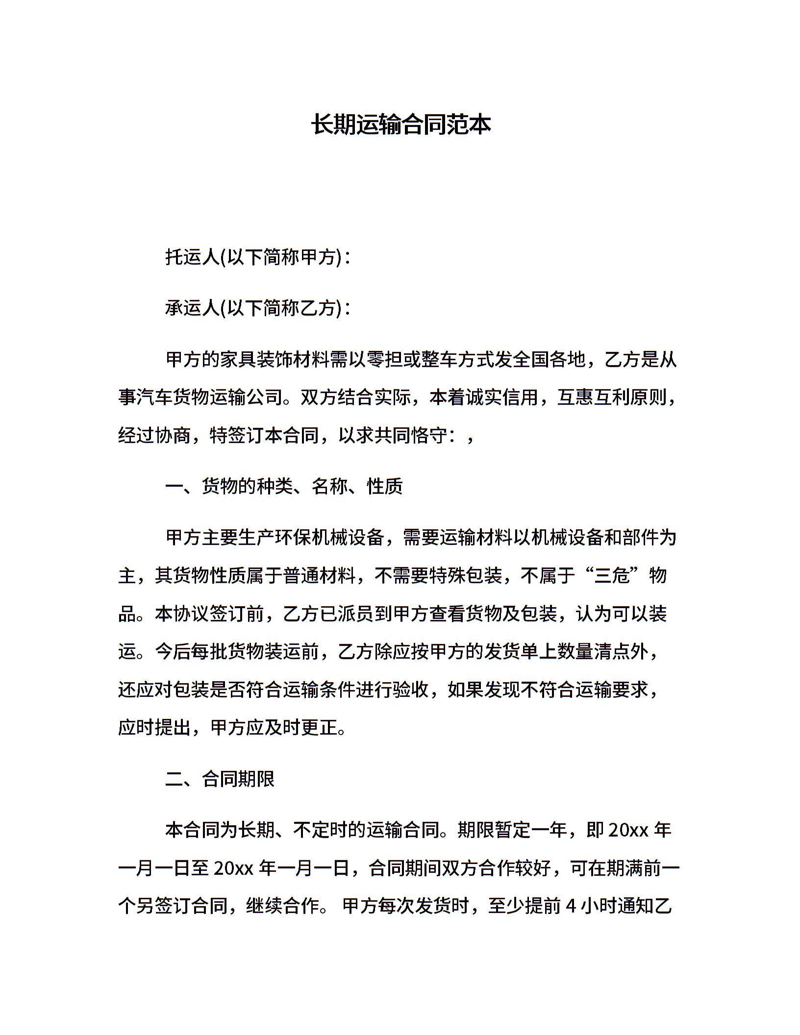 长期运输合同范本