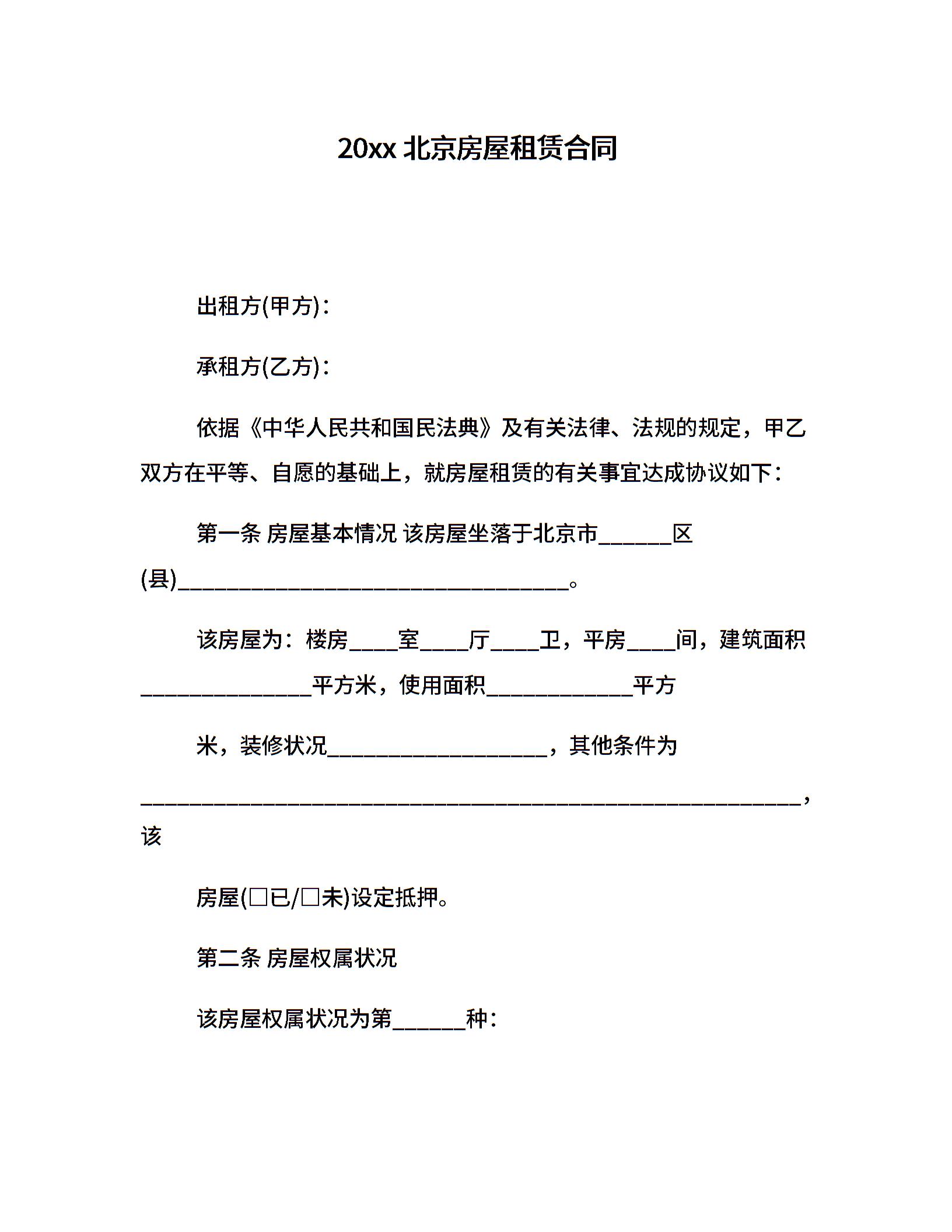 20xx北京房屋租赁合同