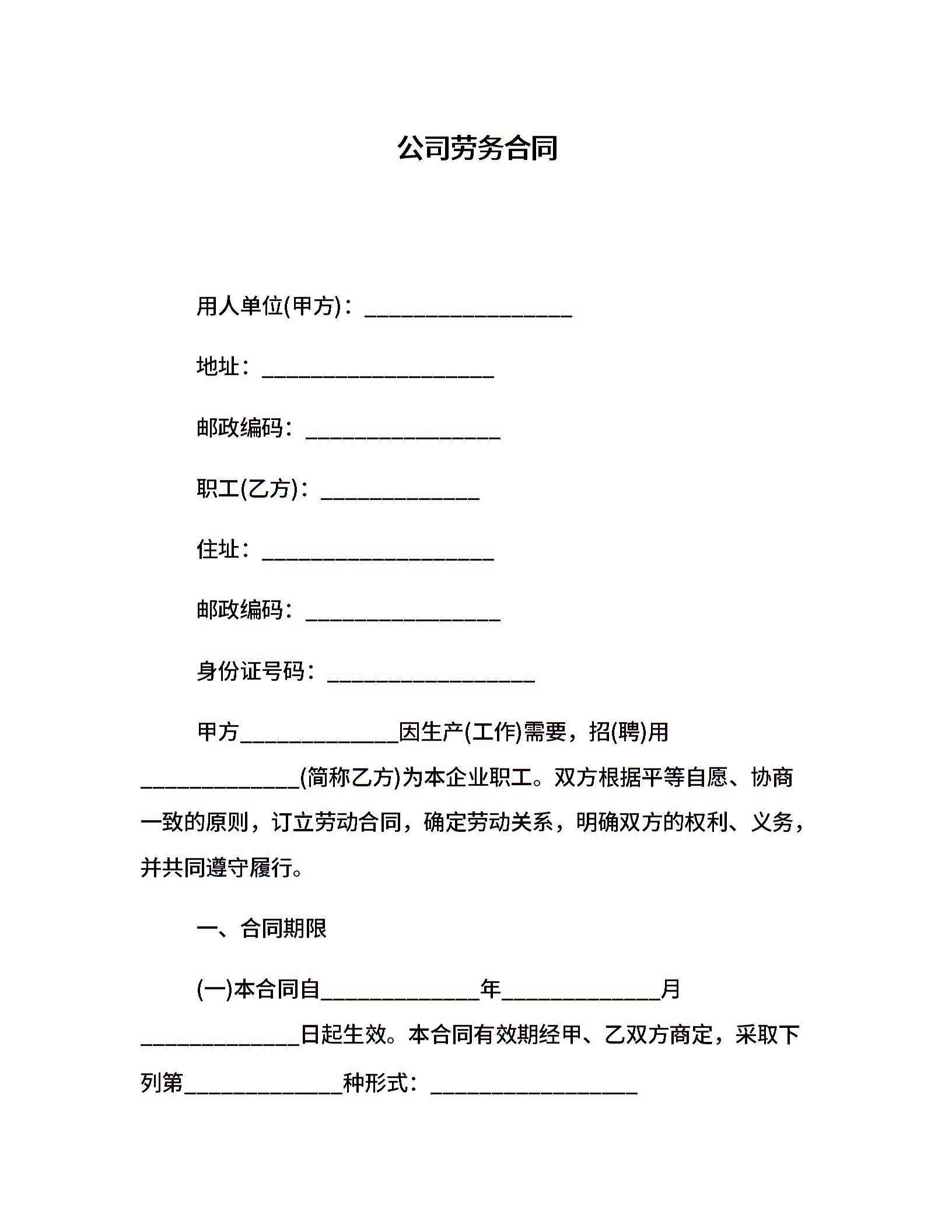 公司劳务合同