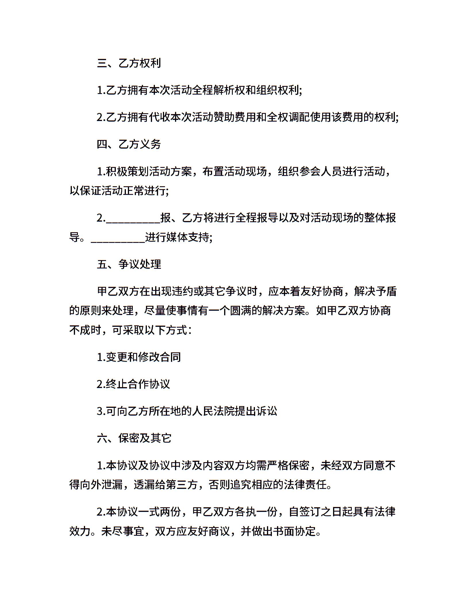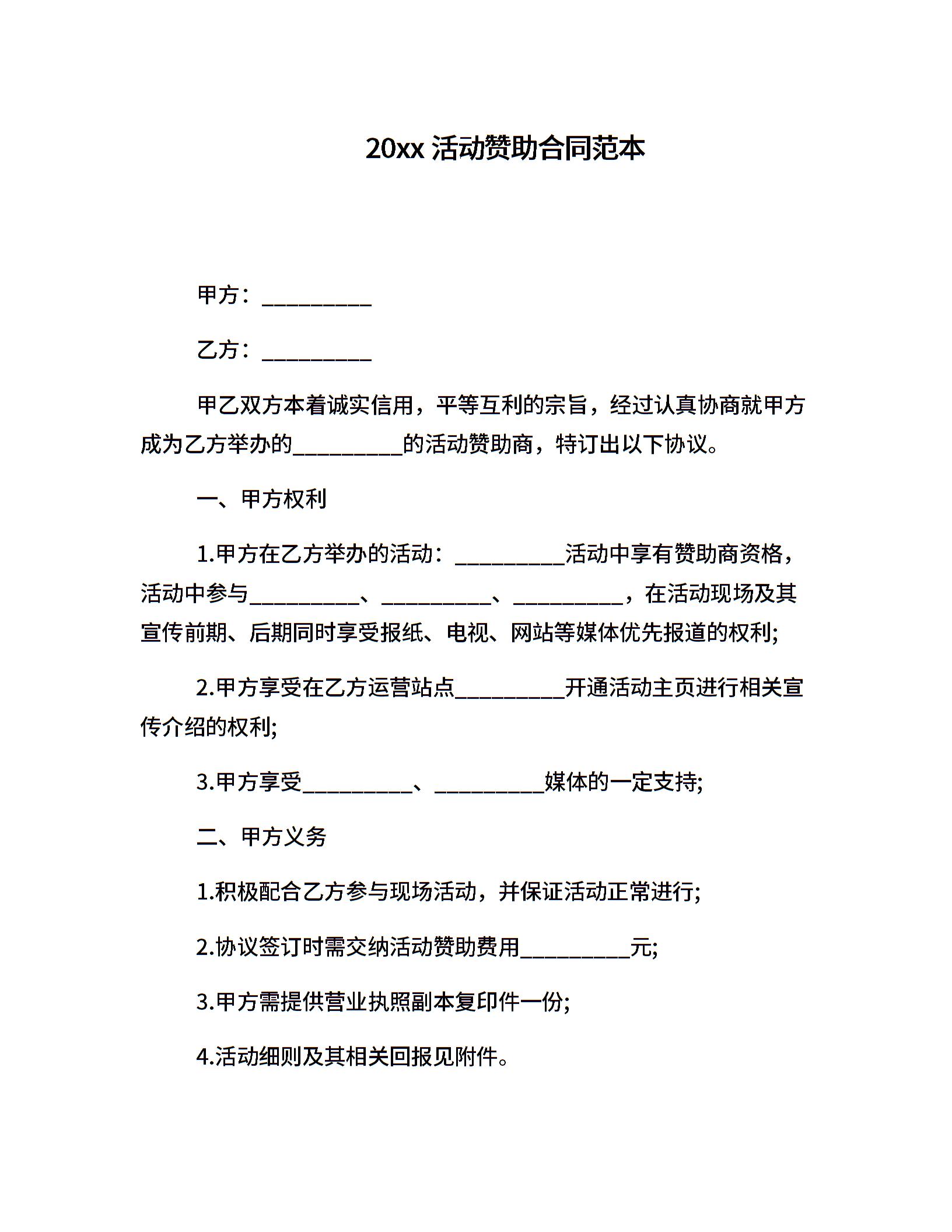 20xx活动赞助合同范本
