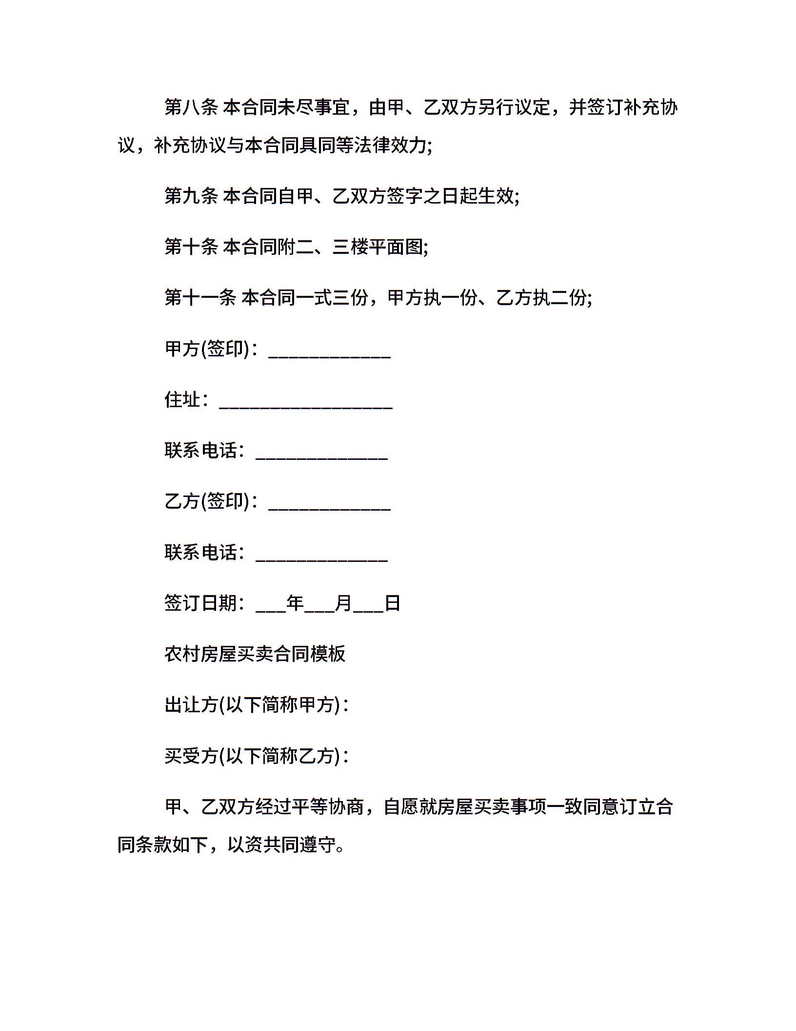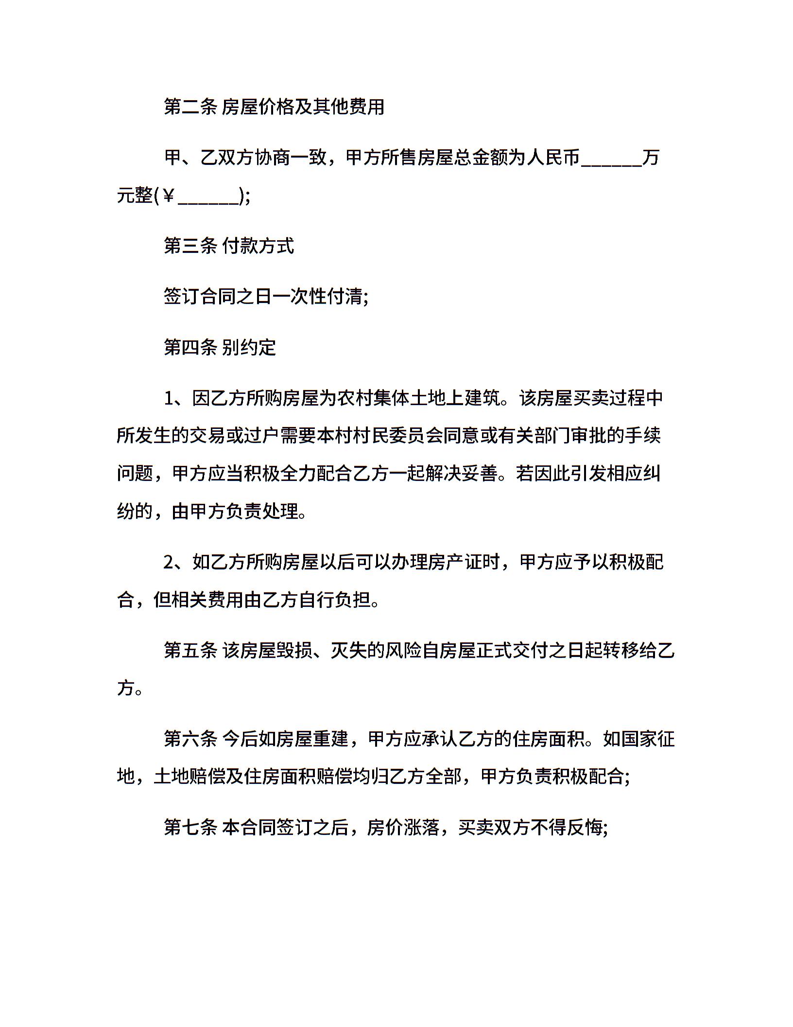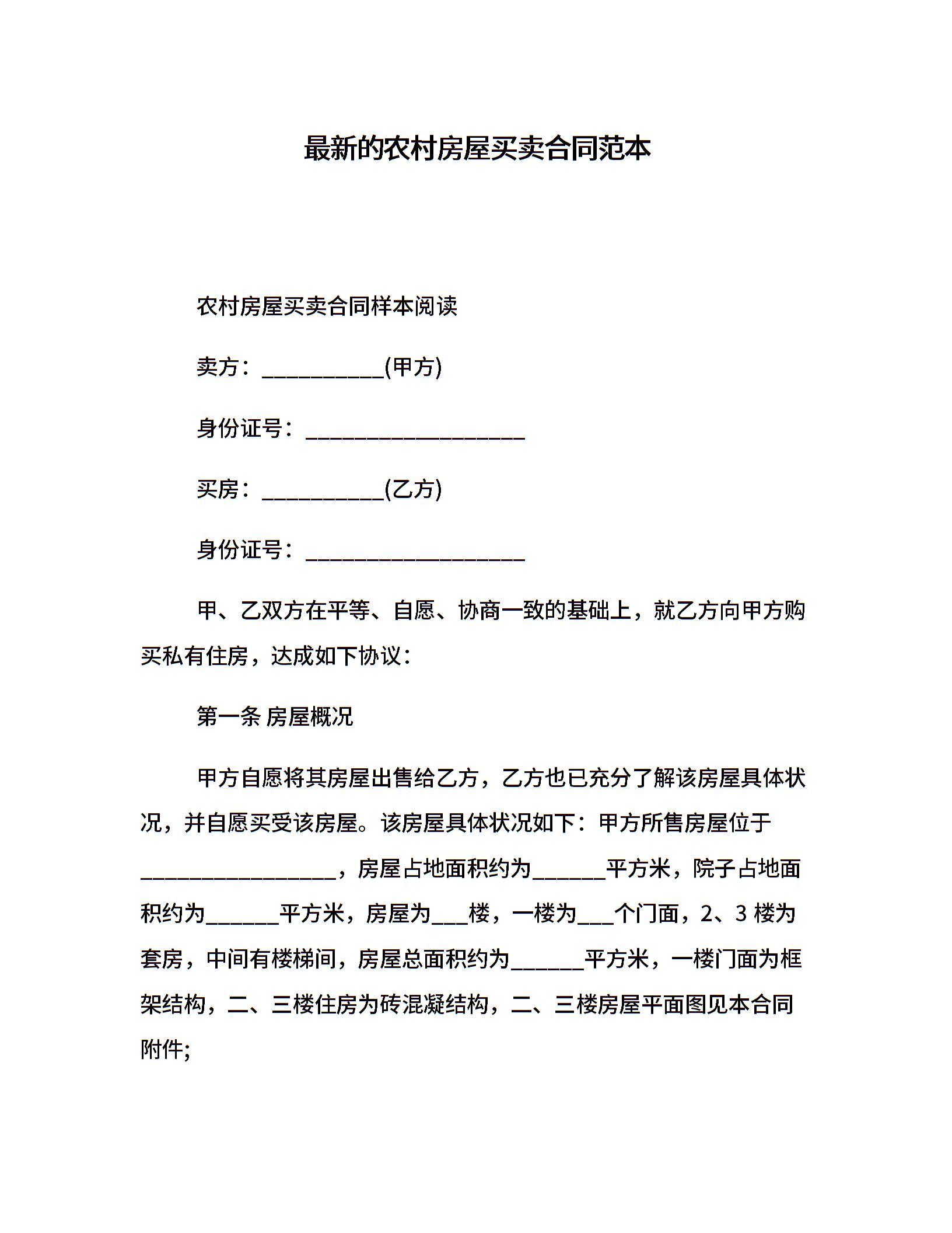 最新的农村房屋买卖合同范本