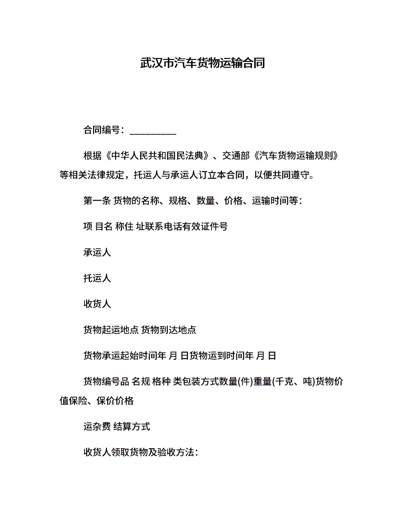 武汉市汽车货物运输合同