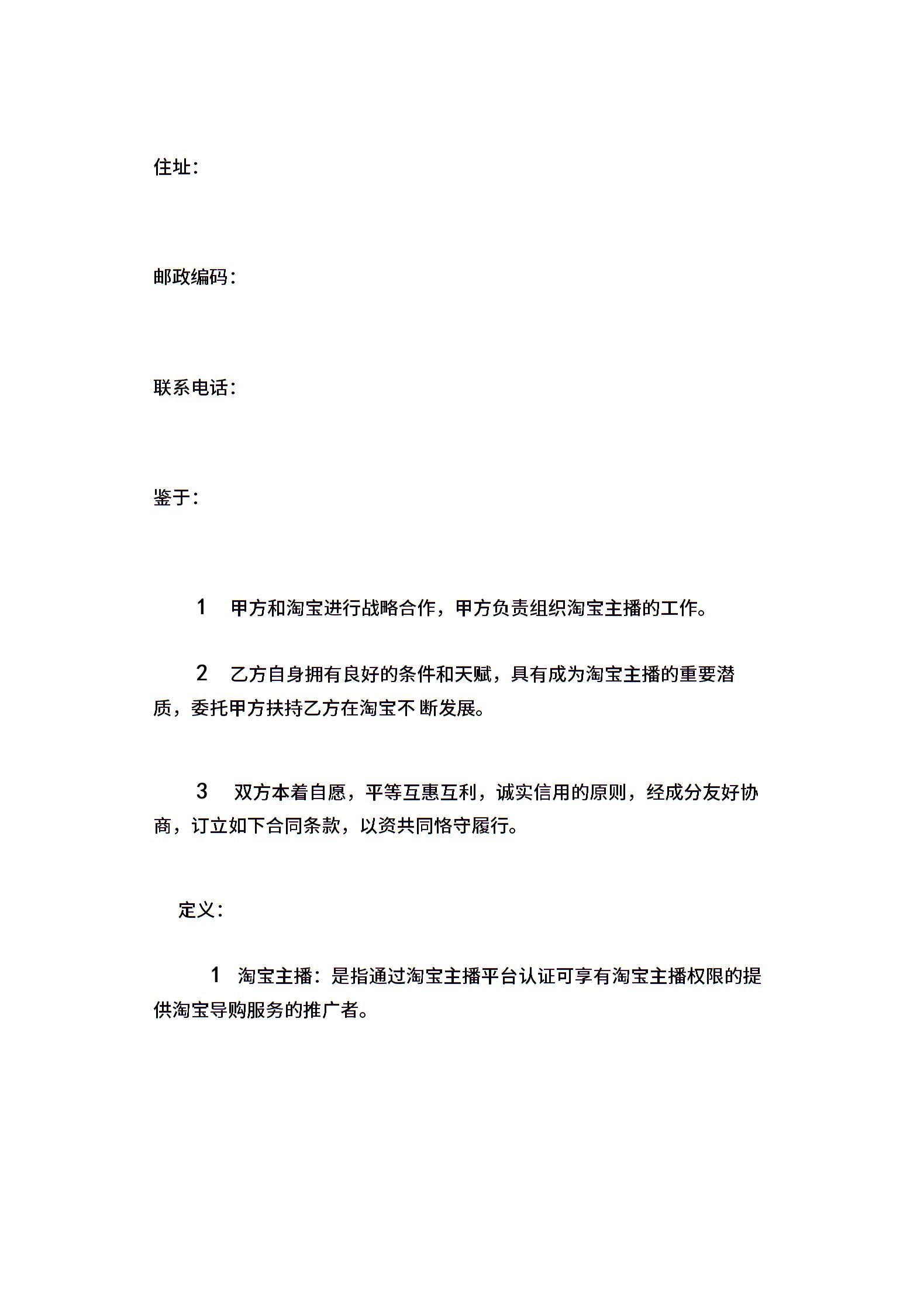 淘宝主播合作协议(1)
