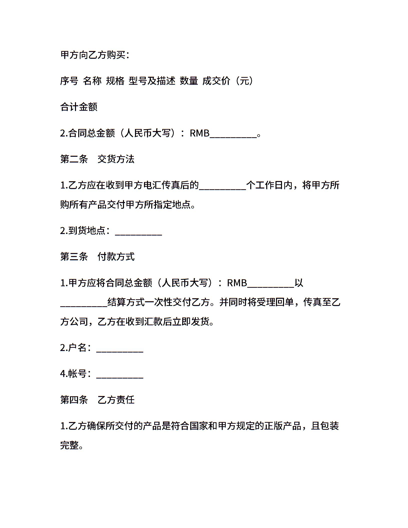 当前位置:量子办公 > 合同模板 > 购销合同 >
