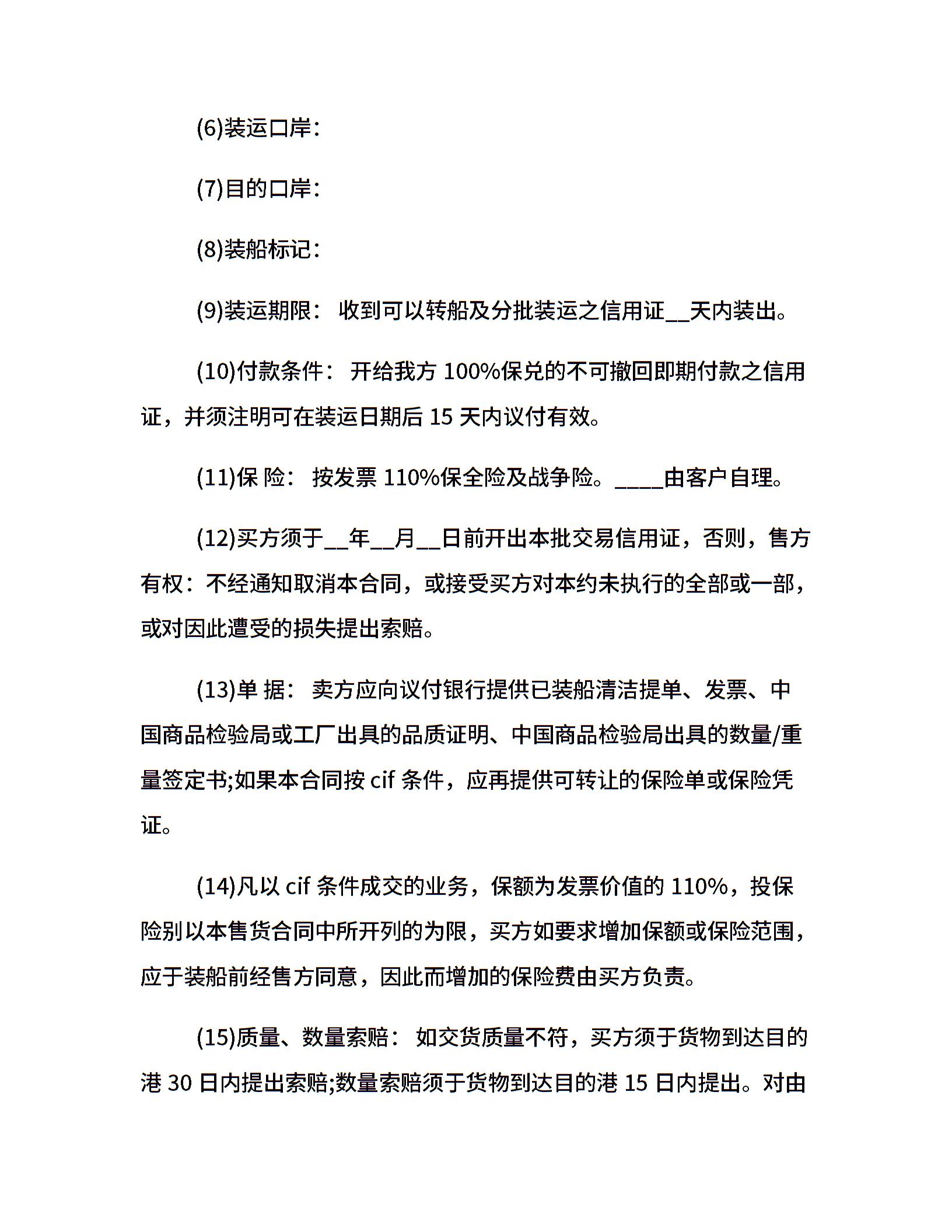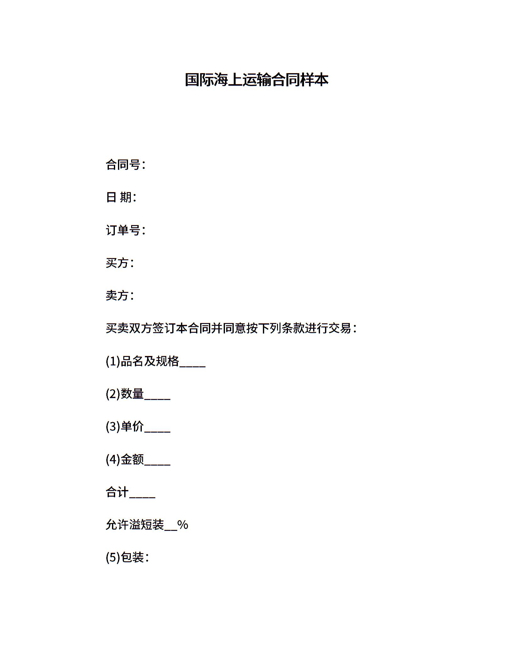 国际海上运输合同样本