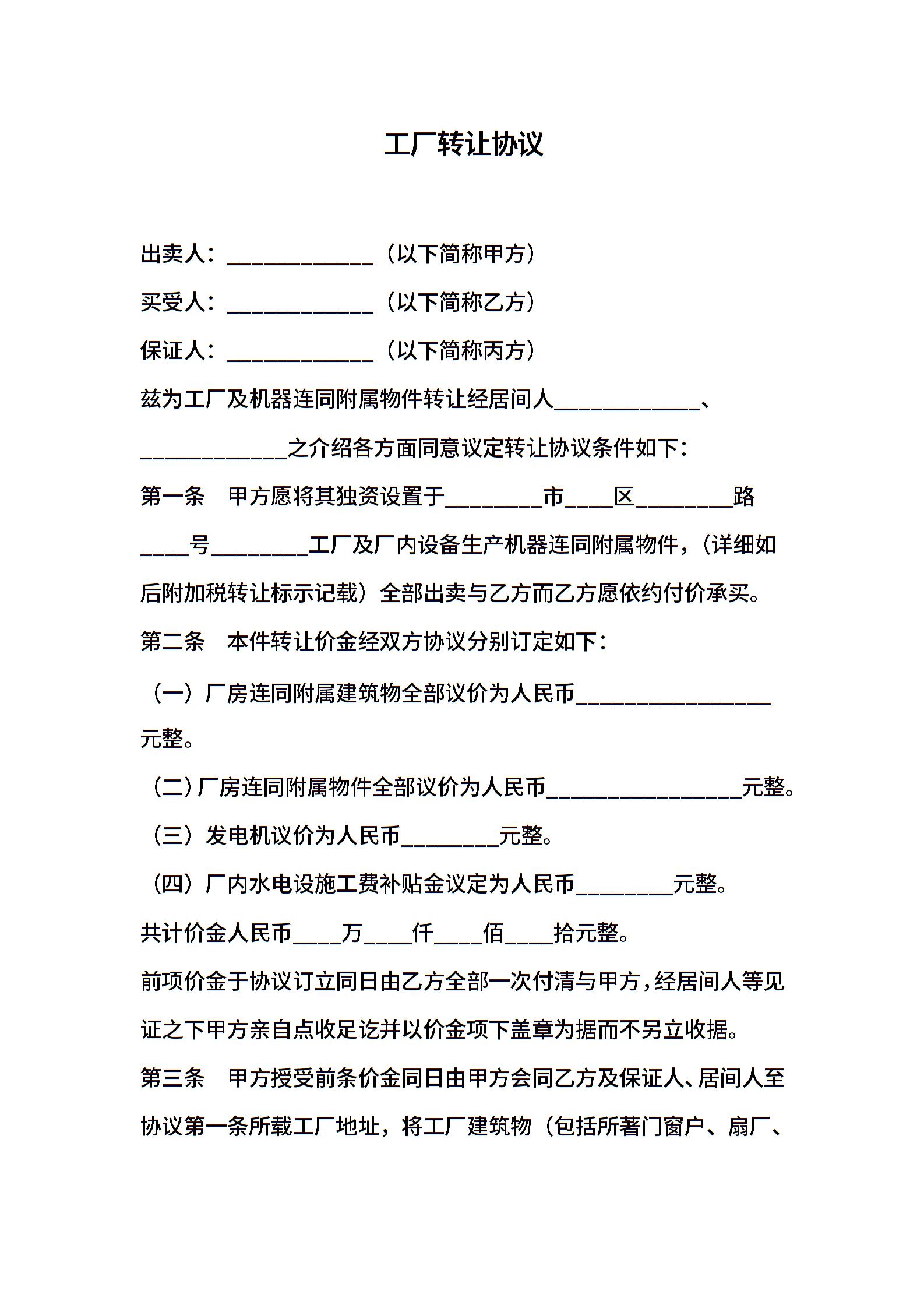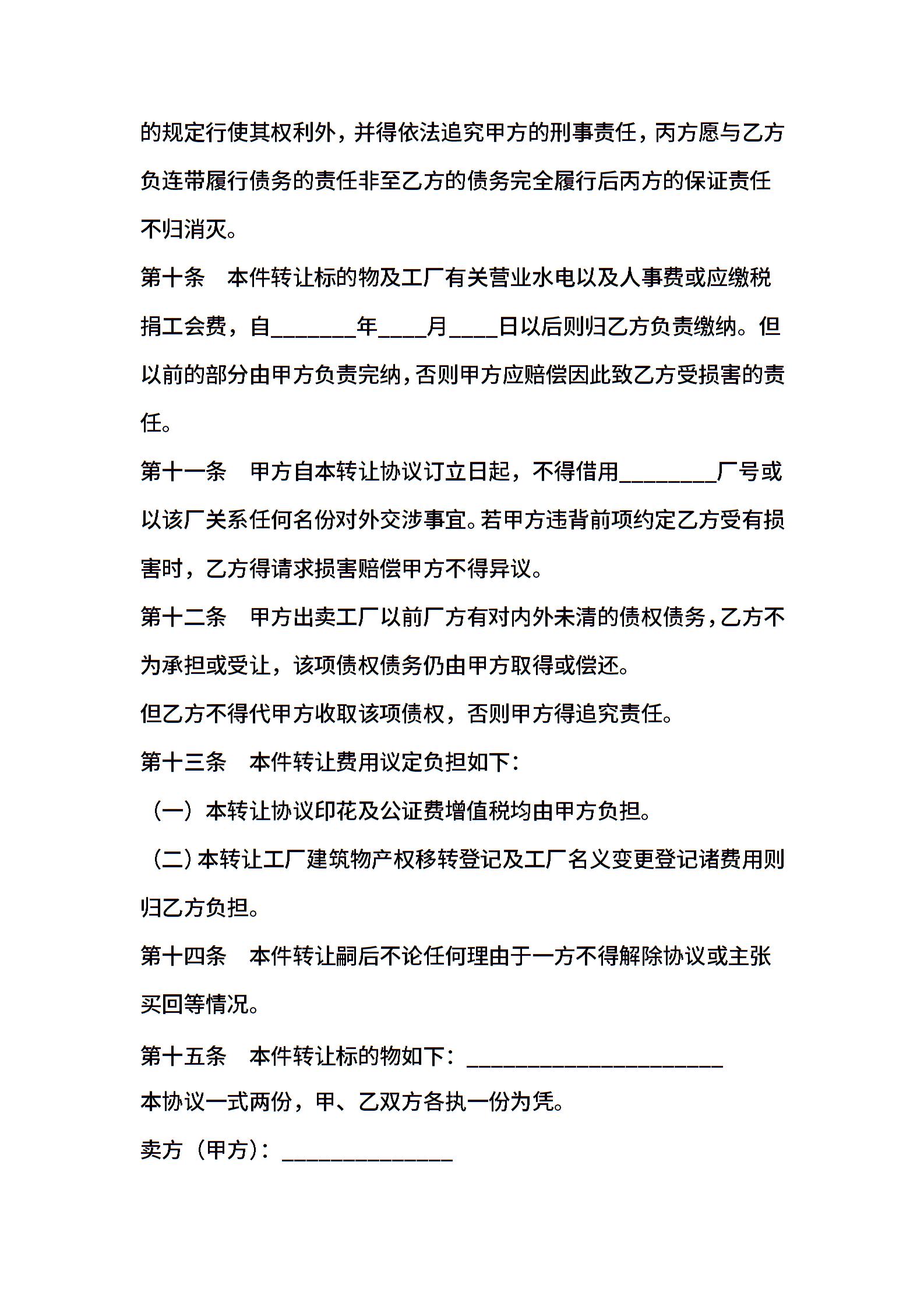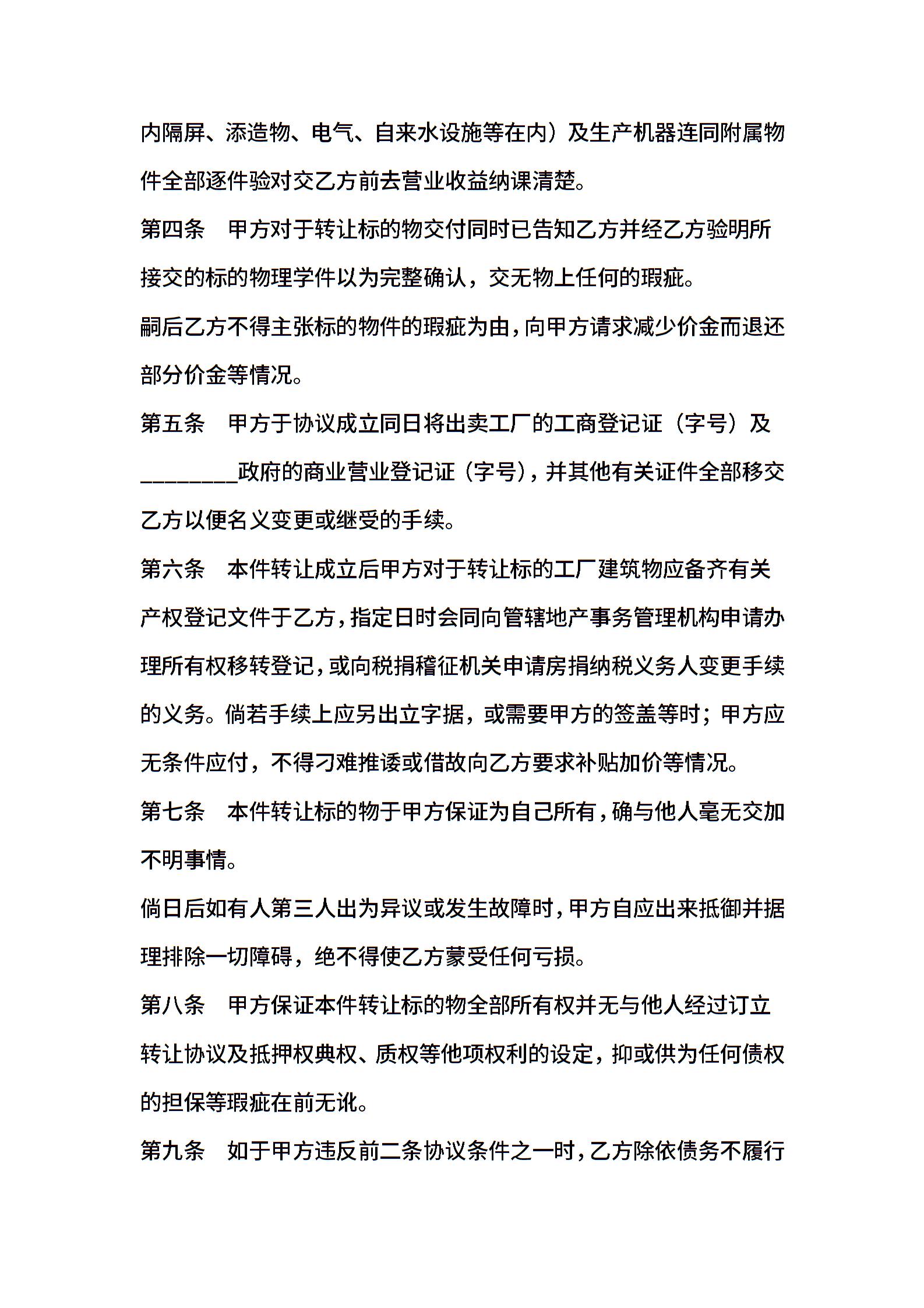 工厂转让协议