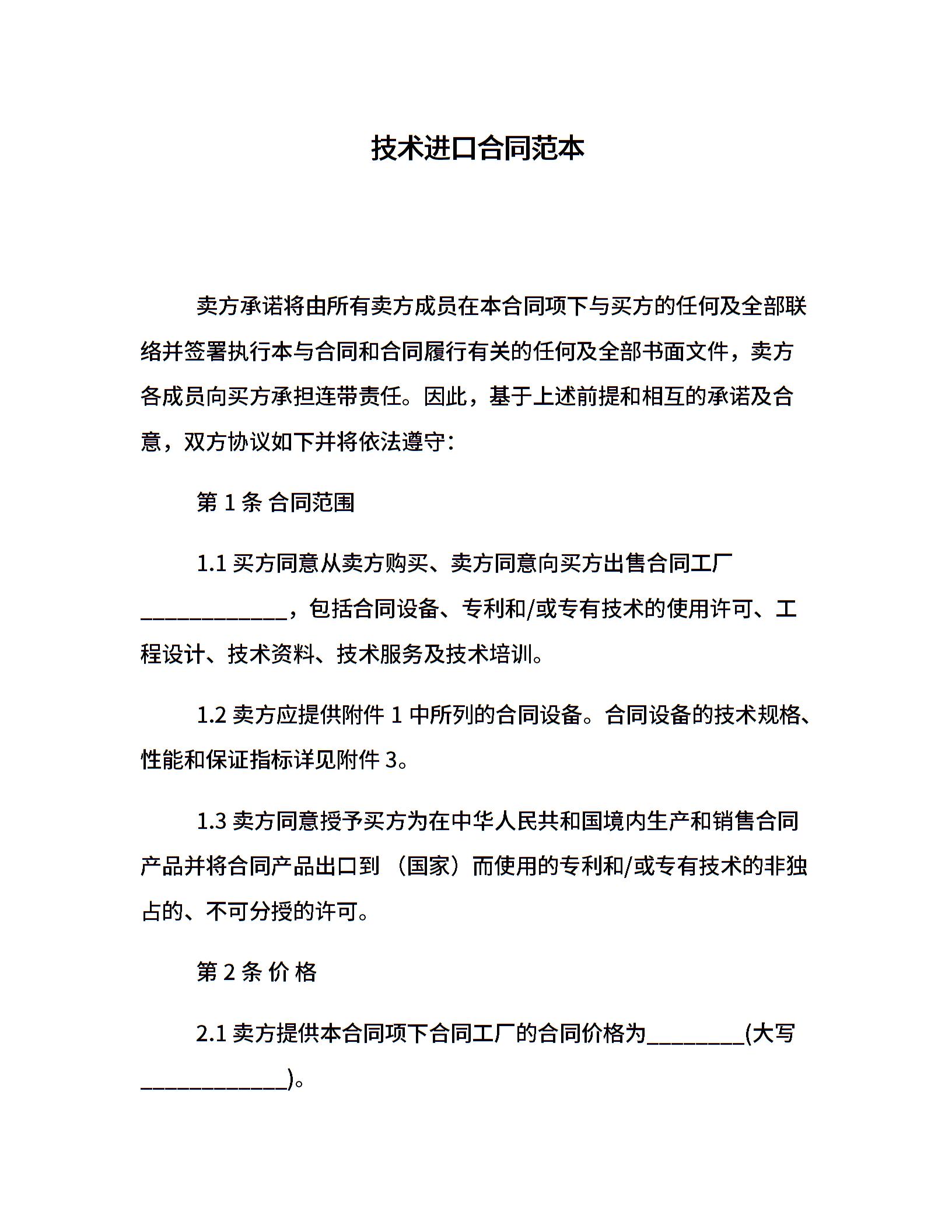 技术进口合同范本