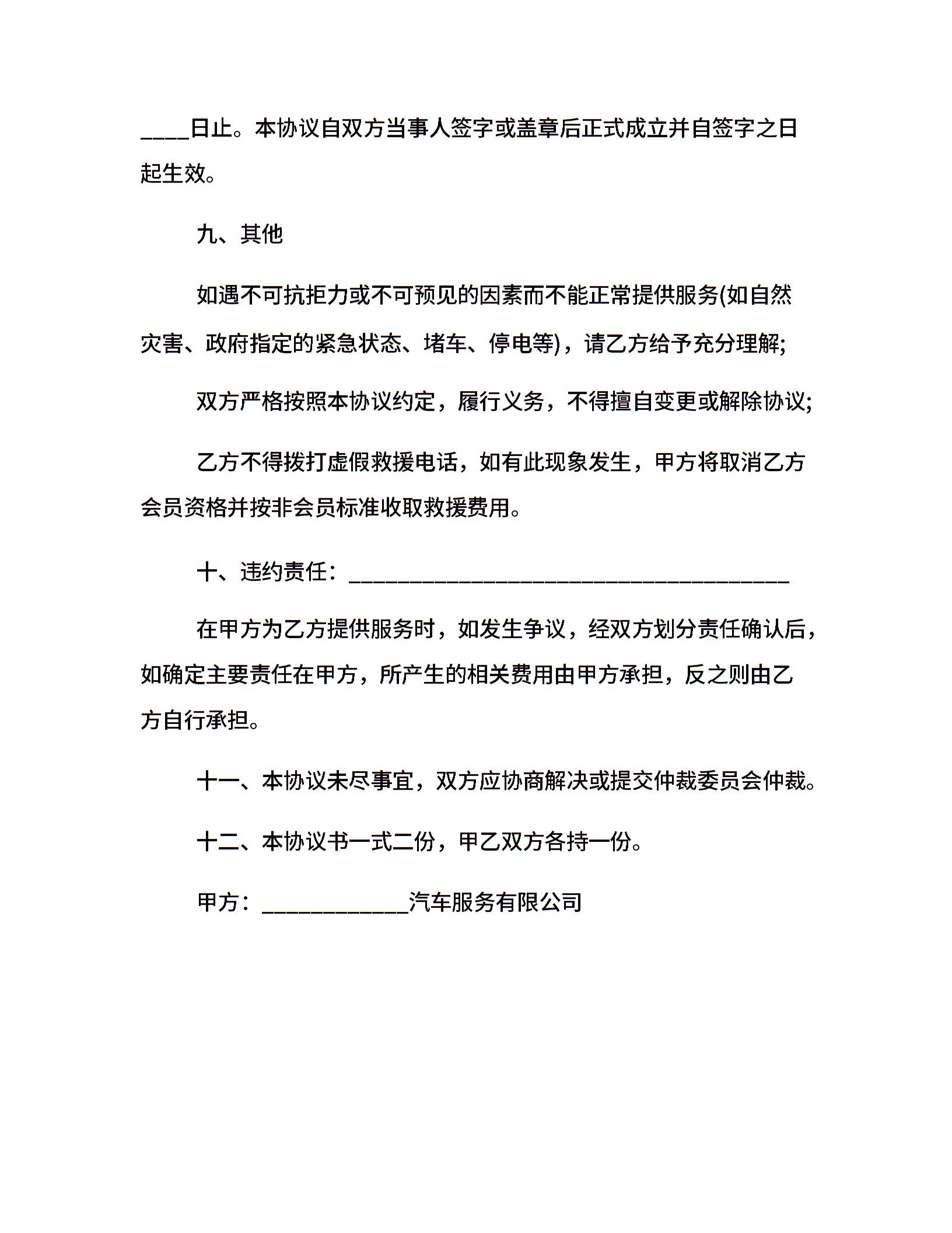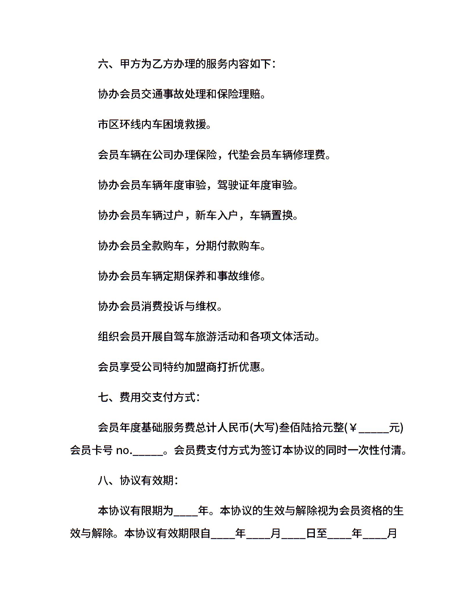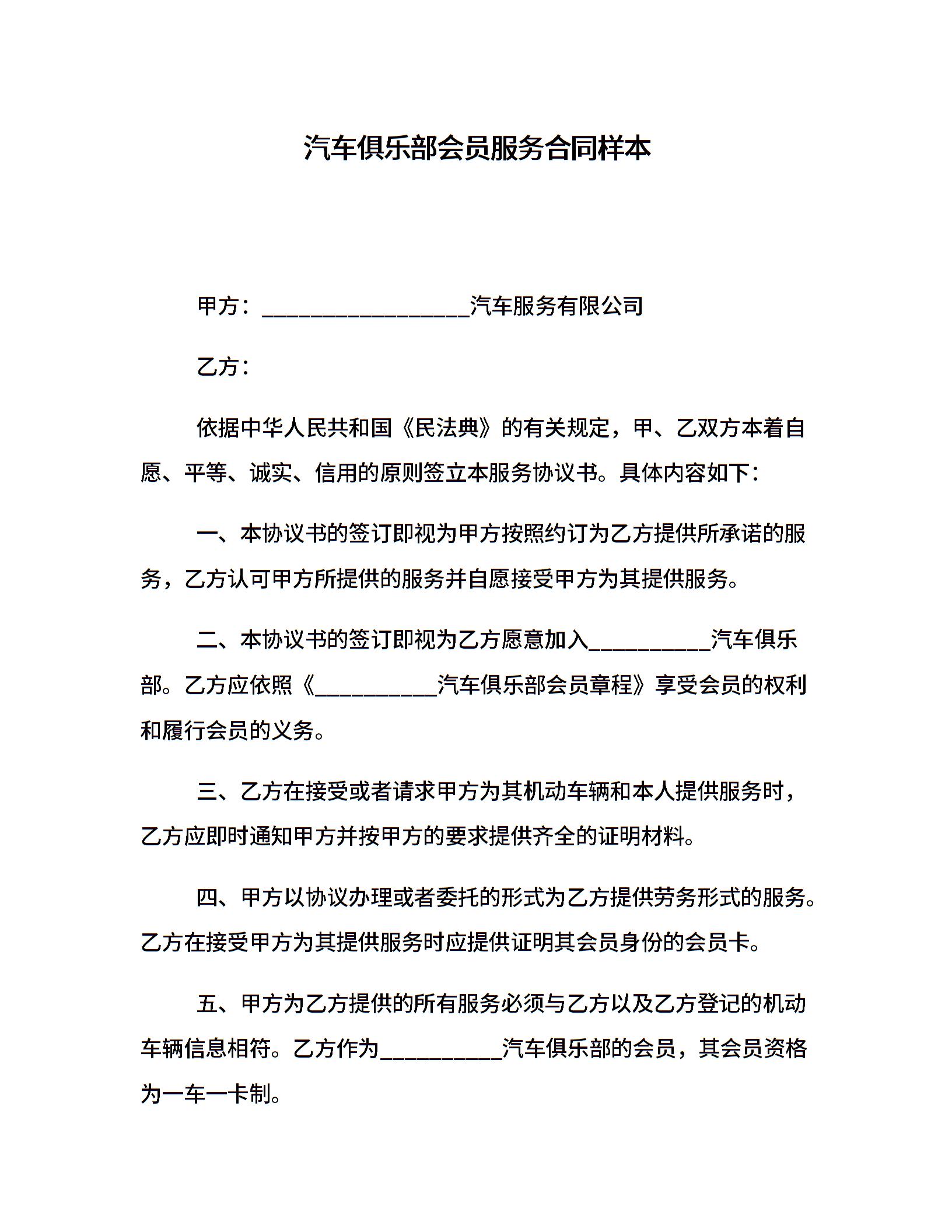 汽车俱乐部会员服务合同样本