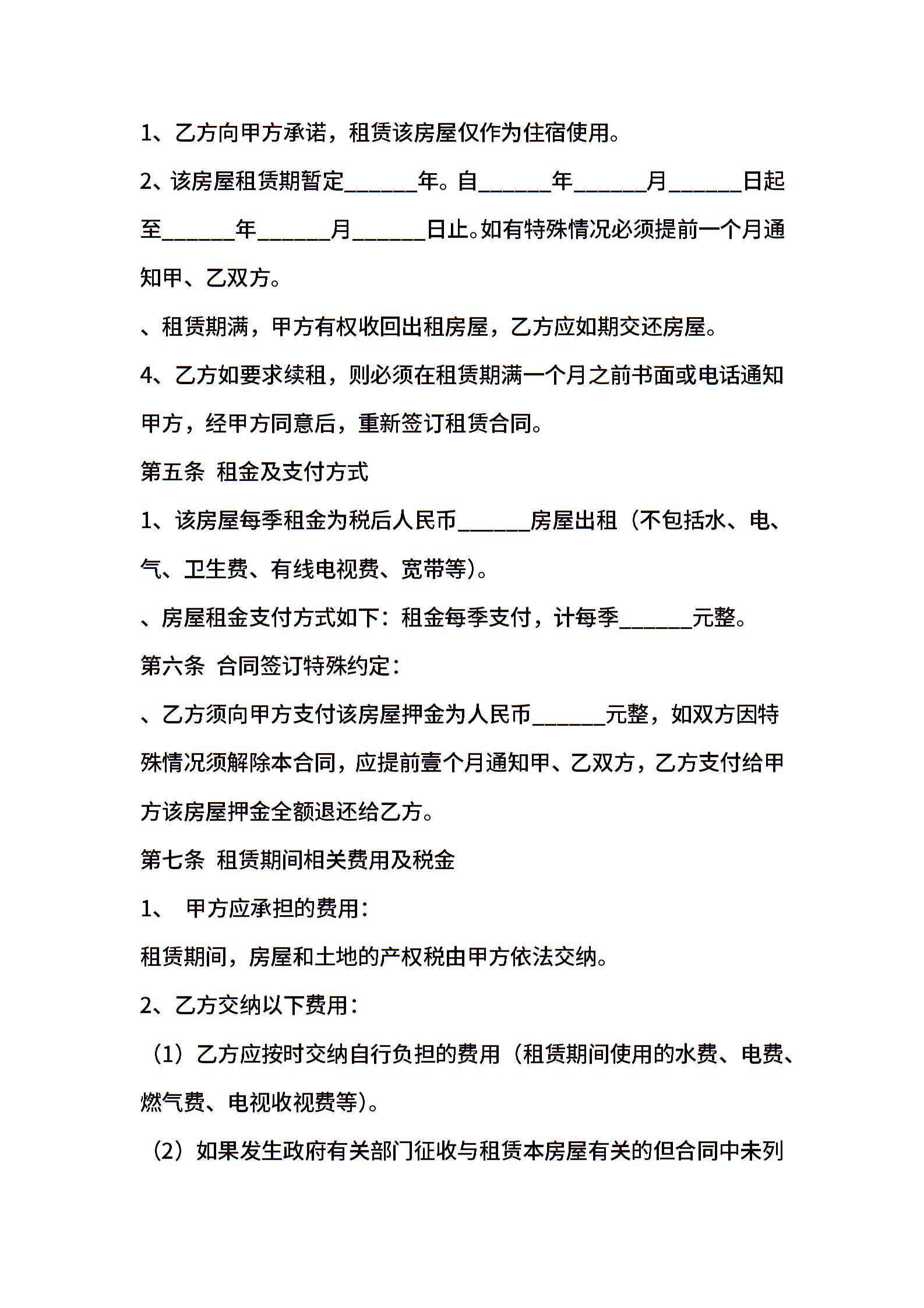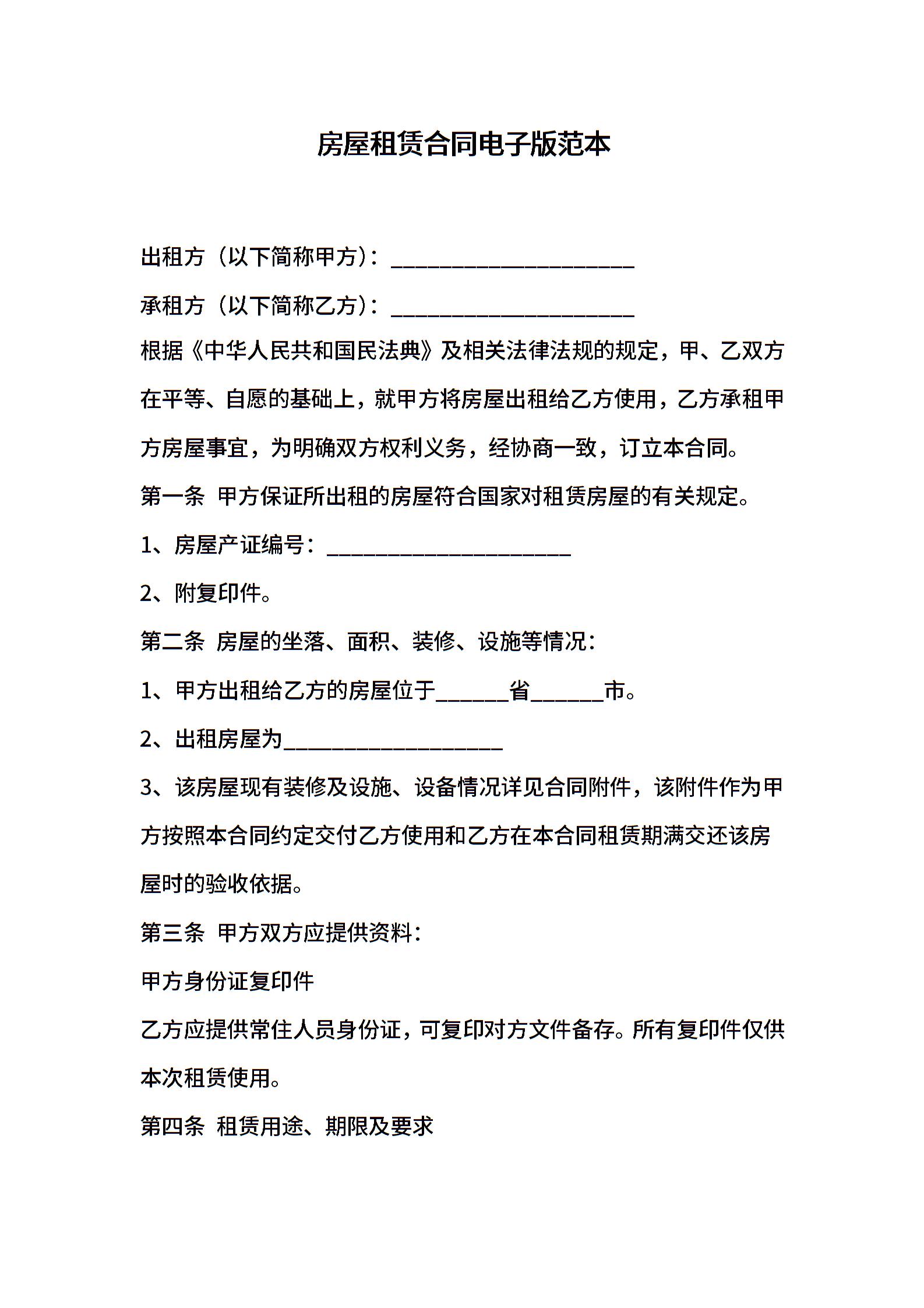 房屋租赁合同电子版范本