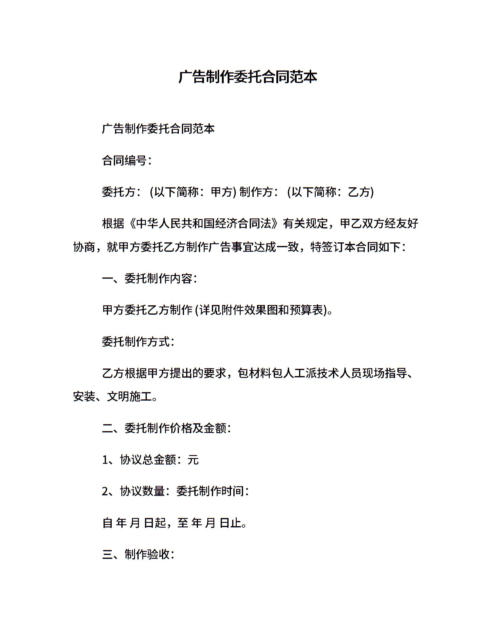 广告制作委托合同范本