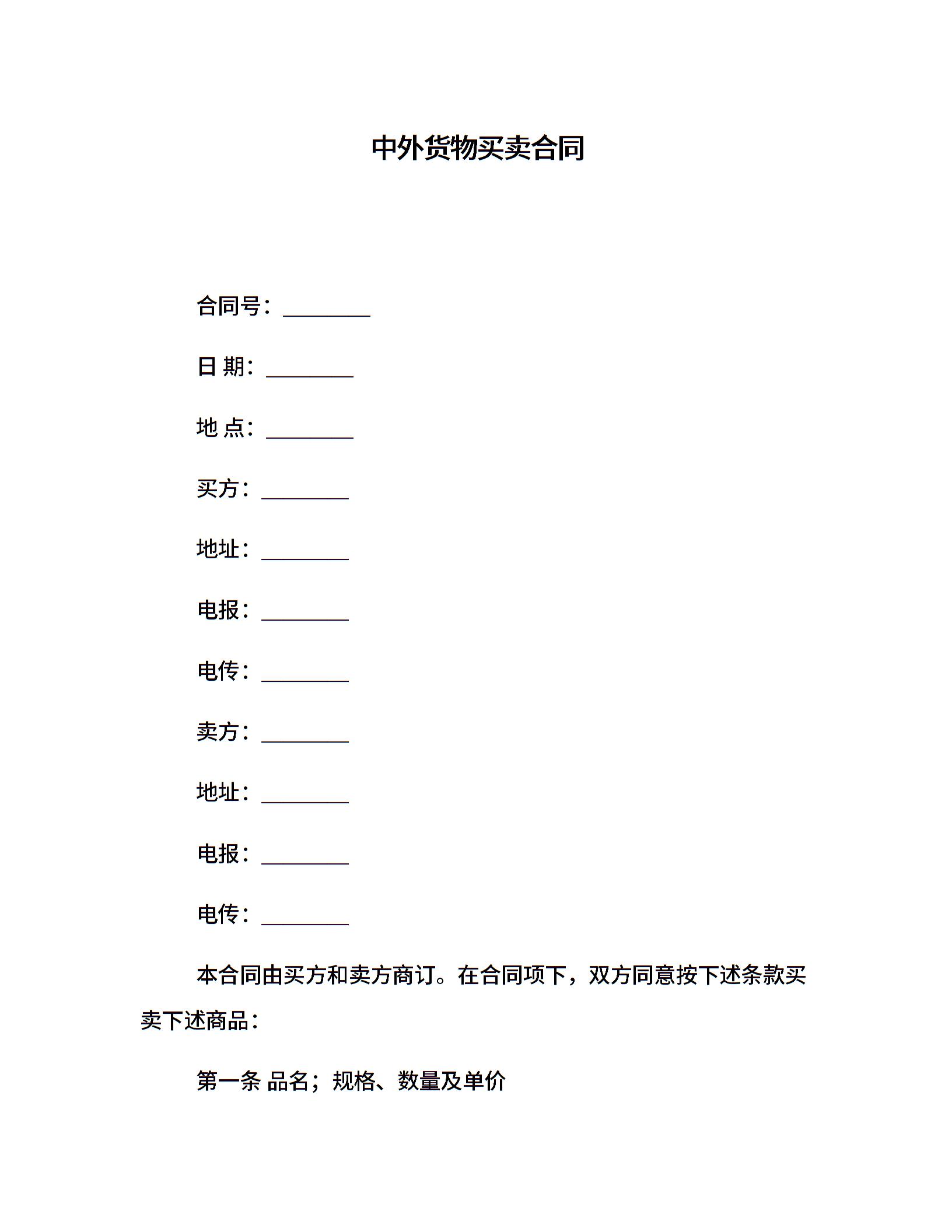 中外货物买卖合同