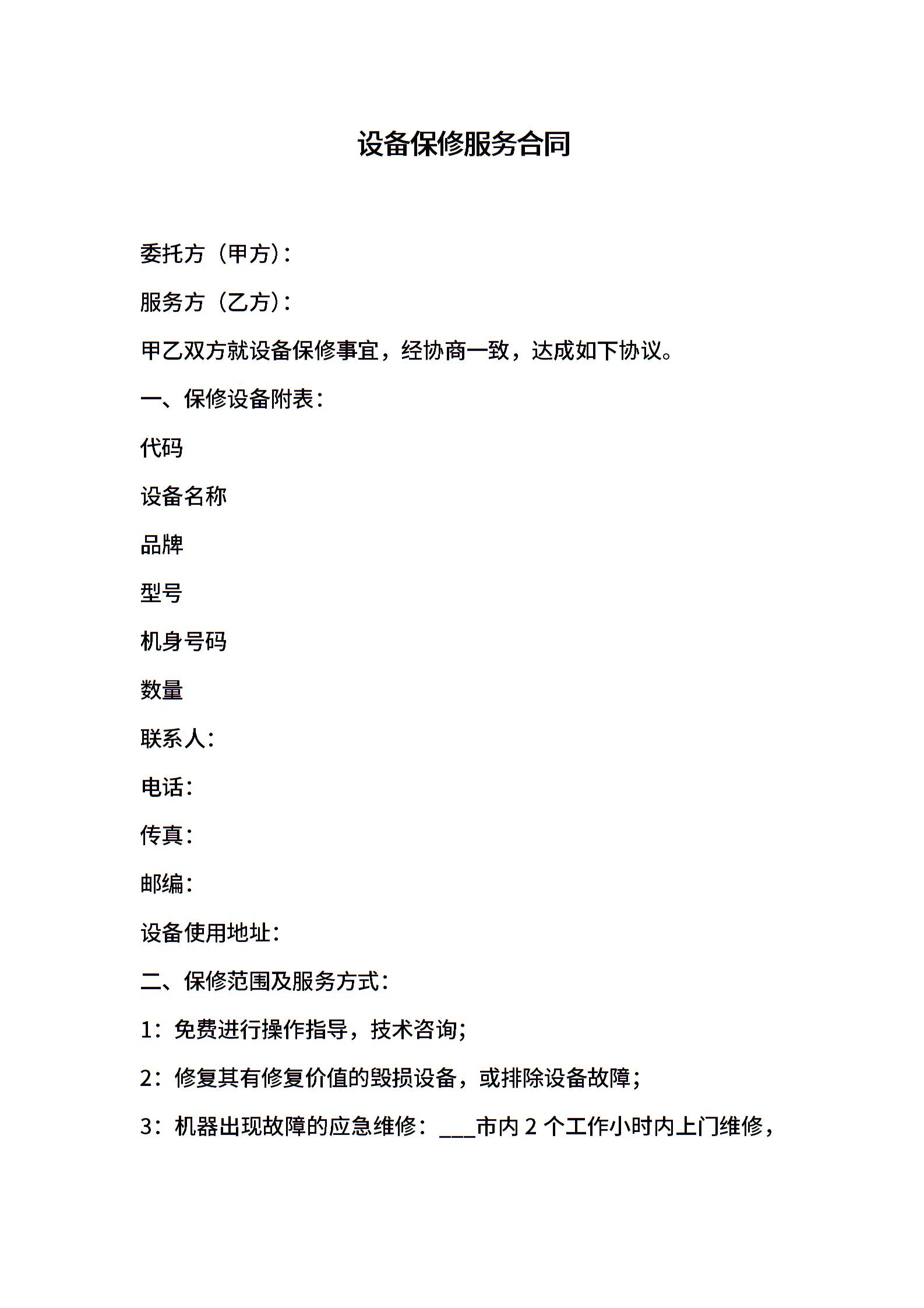 设备保修服务合同
