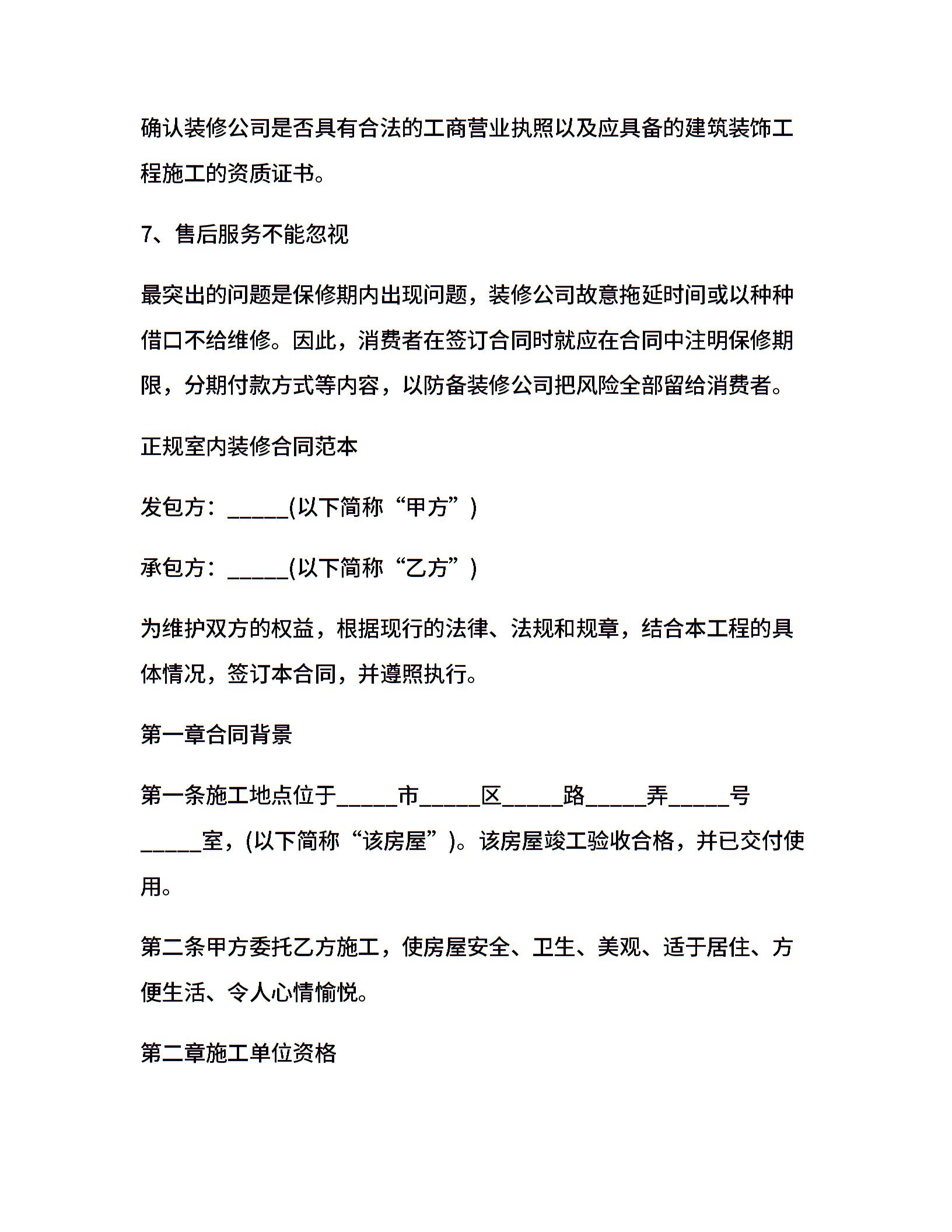 正规室内装修合同