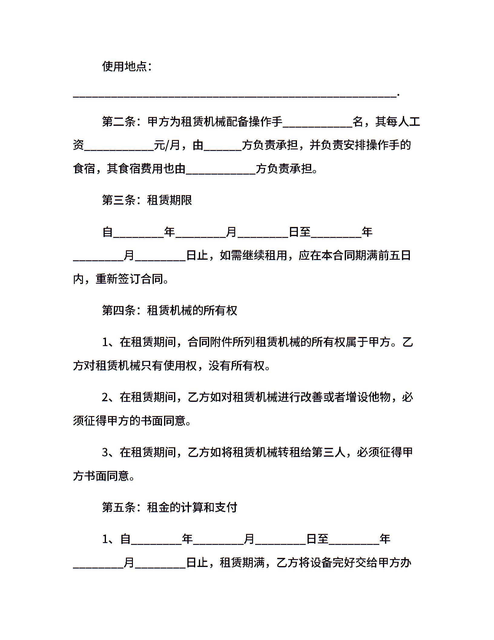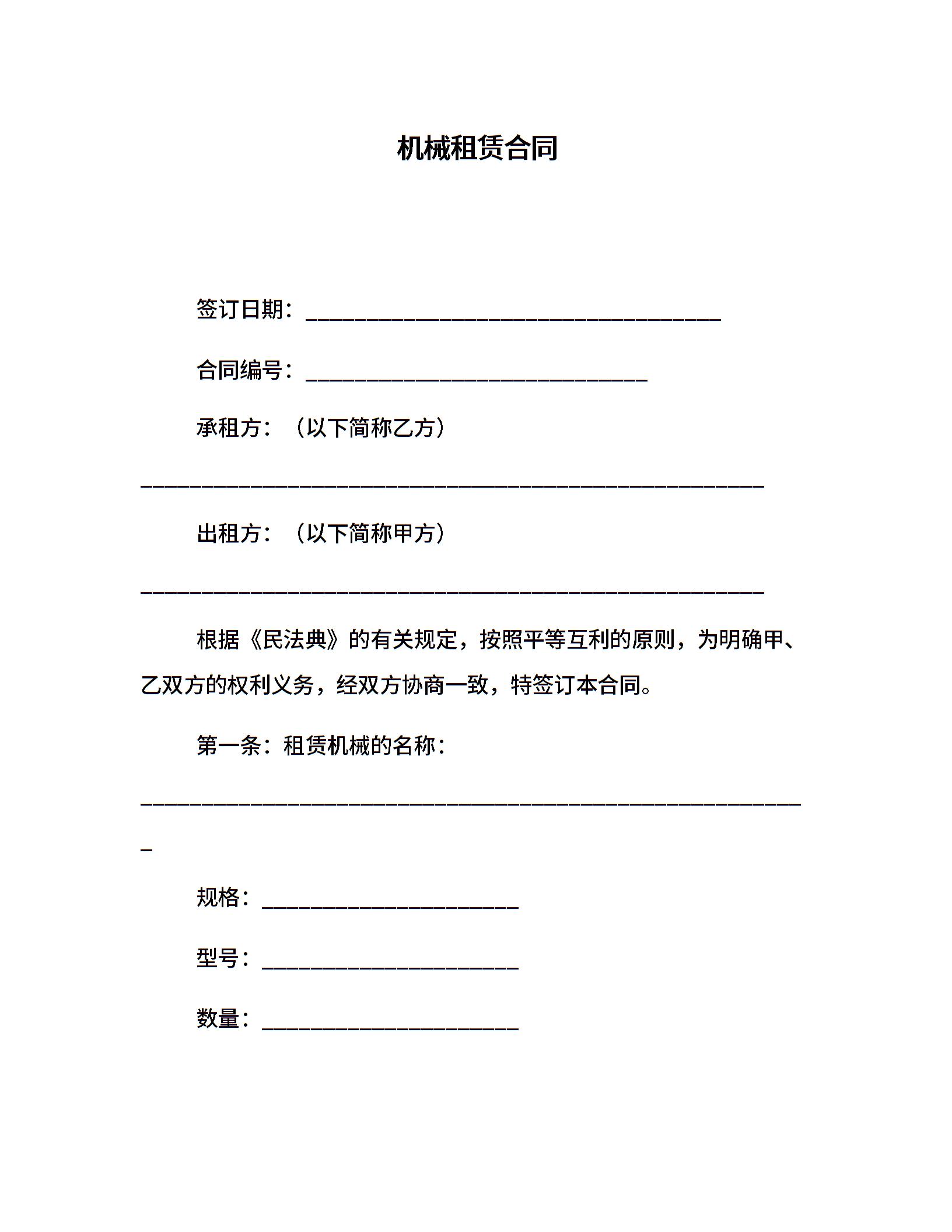 机械租赁合同