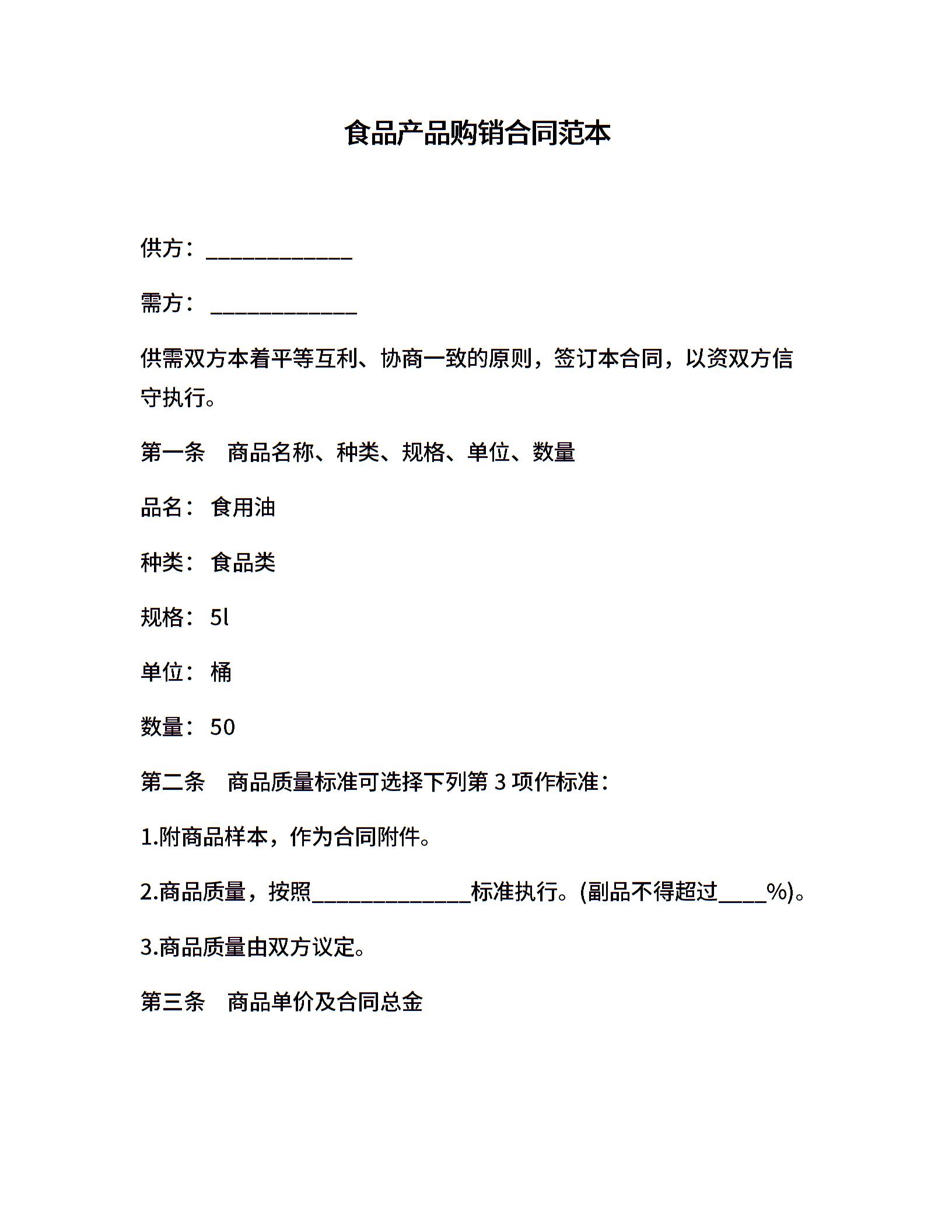 食品产品购销合同范本