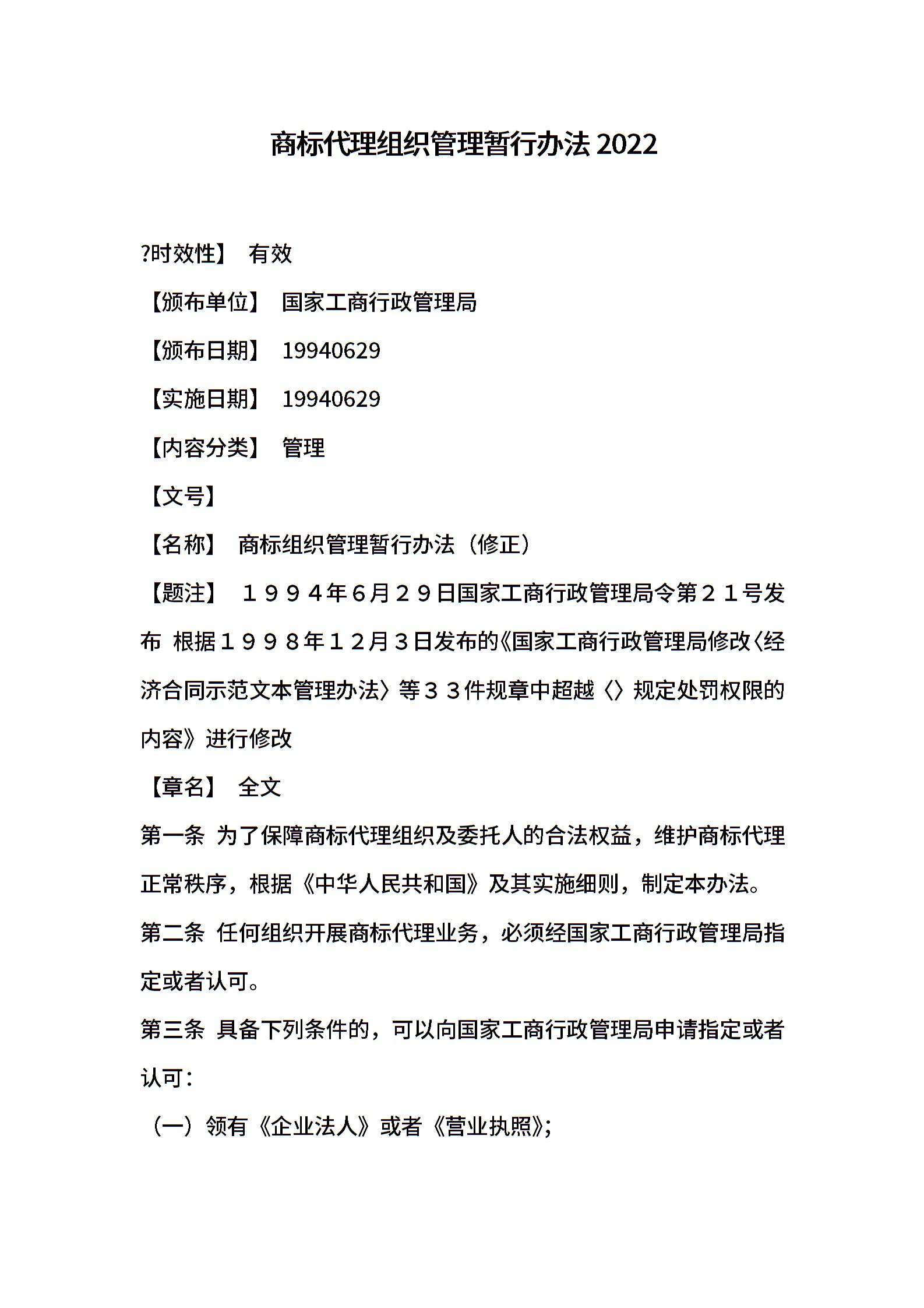 商标代理组织管理暂行办法2022
