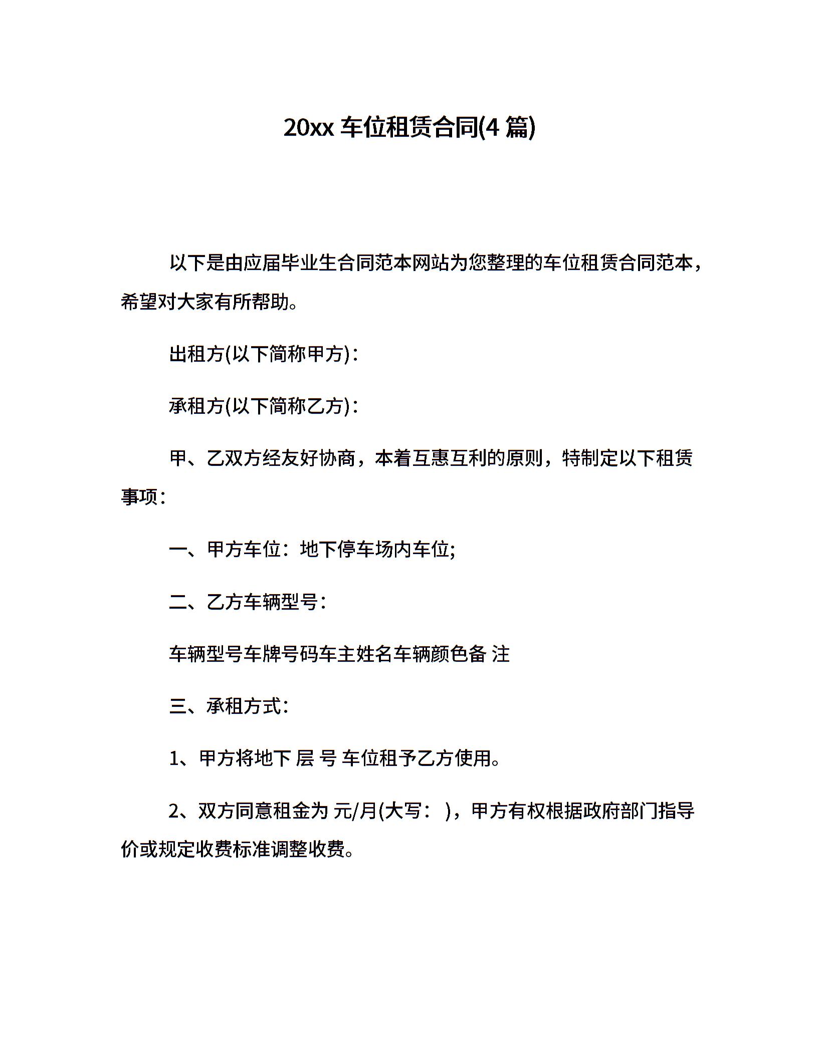 20xx车位租赁合同(4篇)