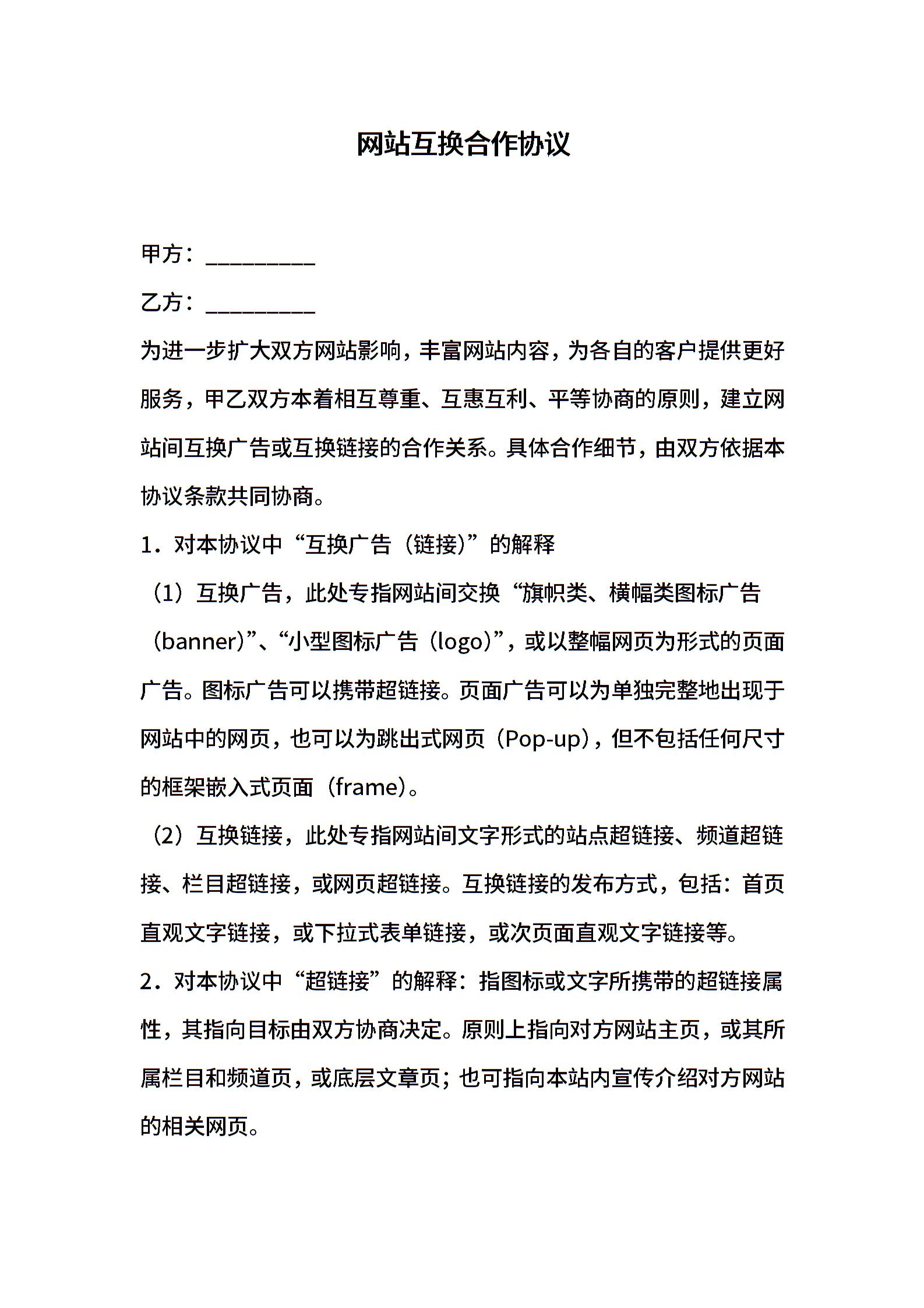 网站互换合作协议