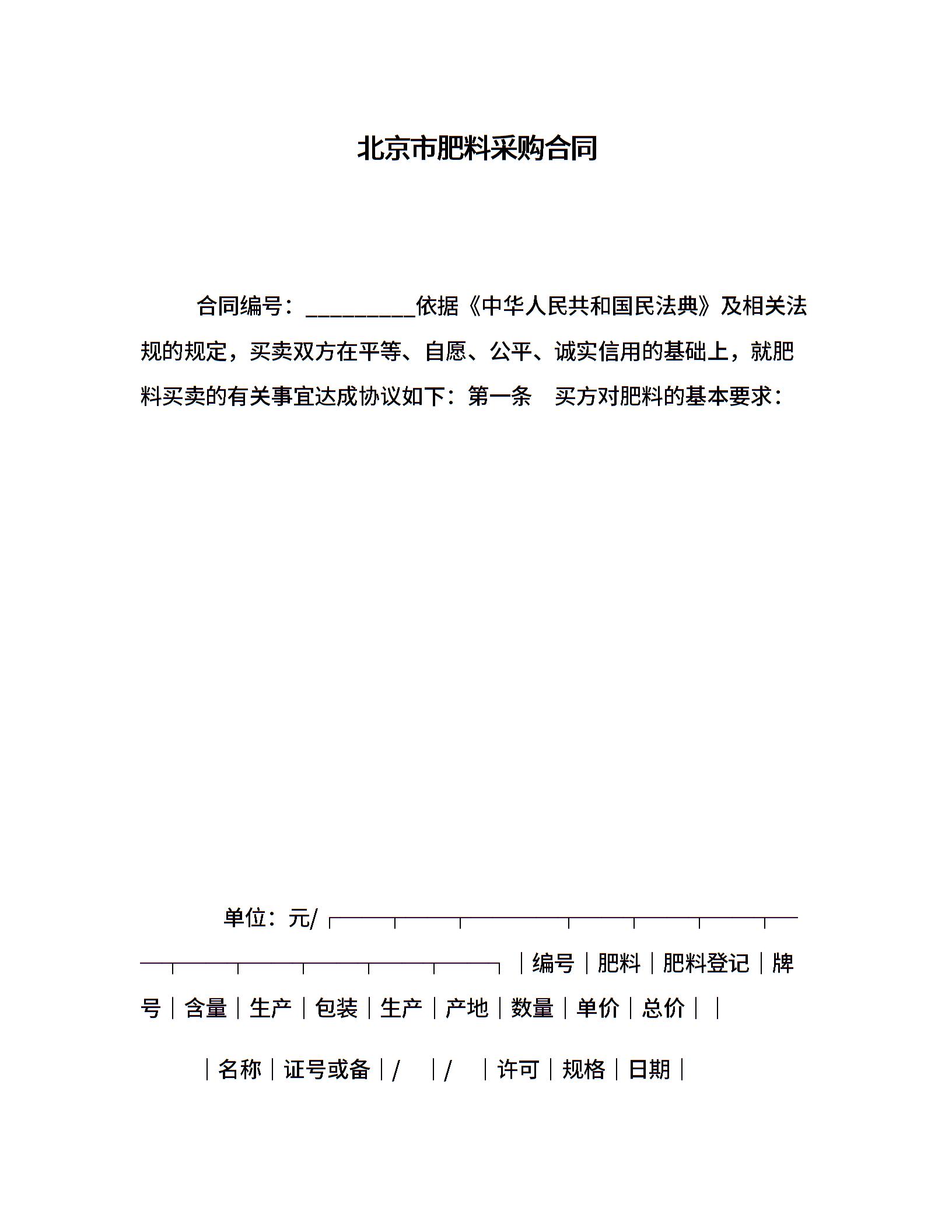 北京市肥料采购合同
