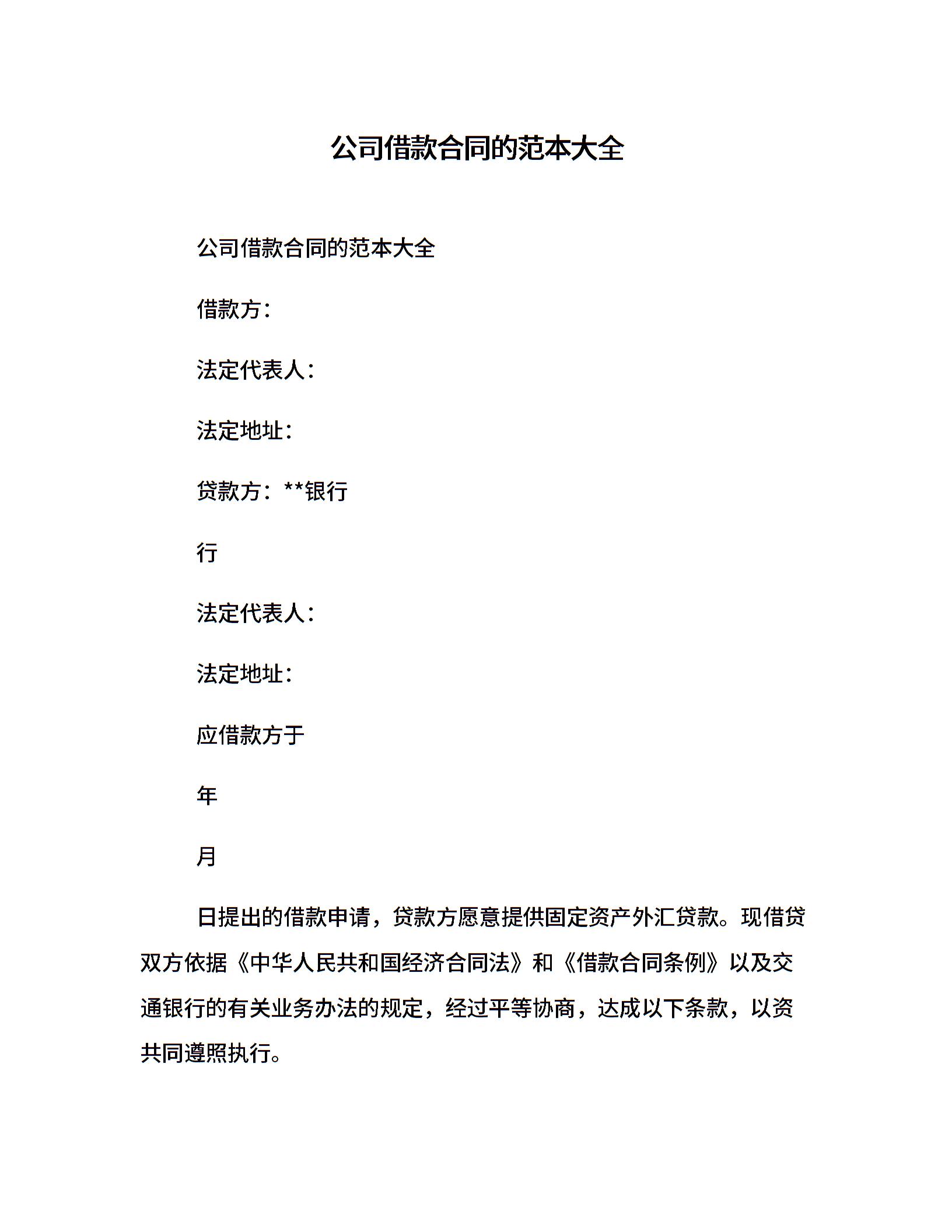 公司借款合同的范本大全