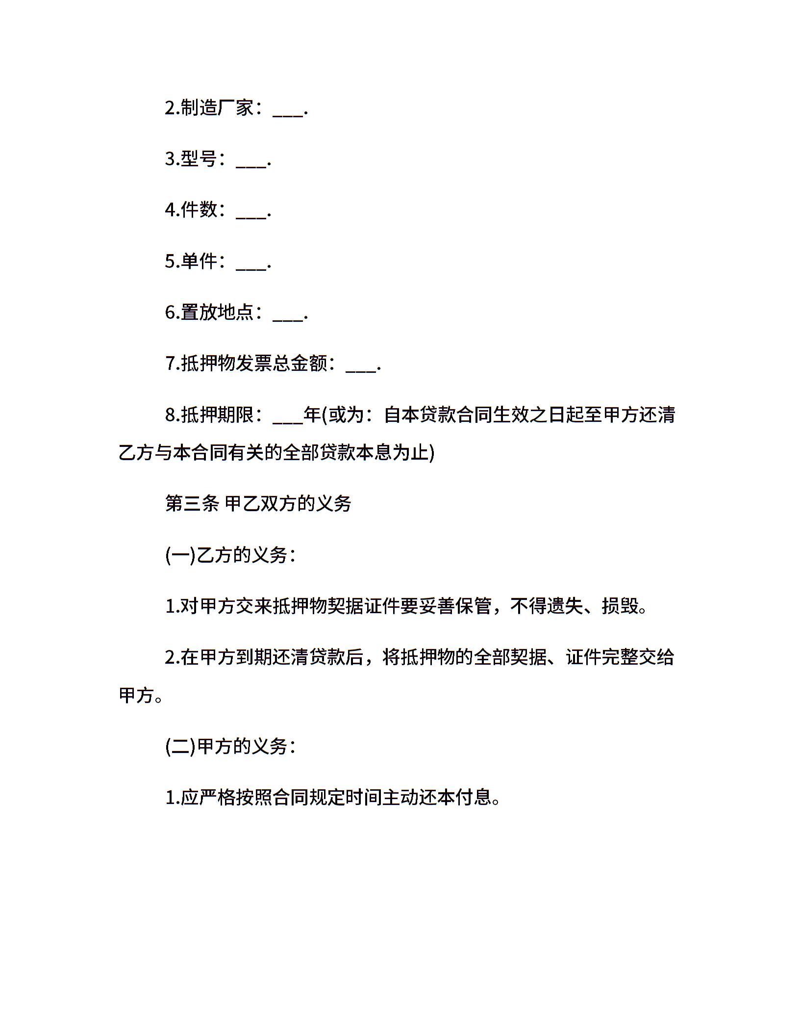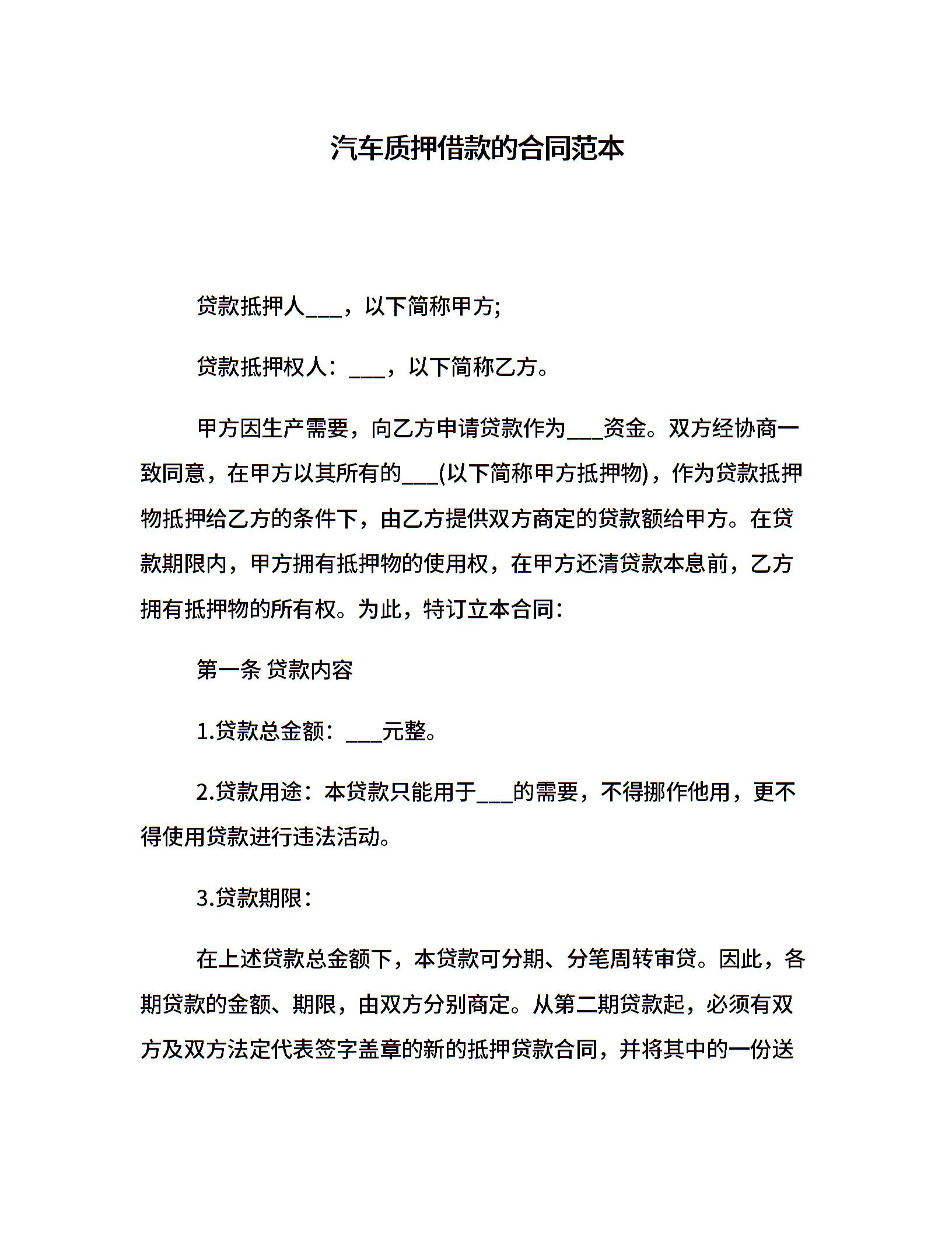 汽车质押借款的合同范本