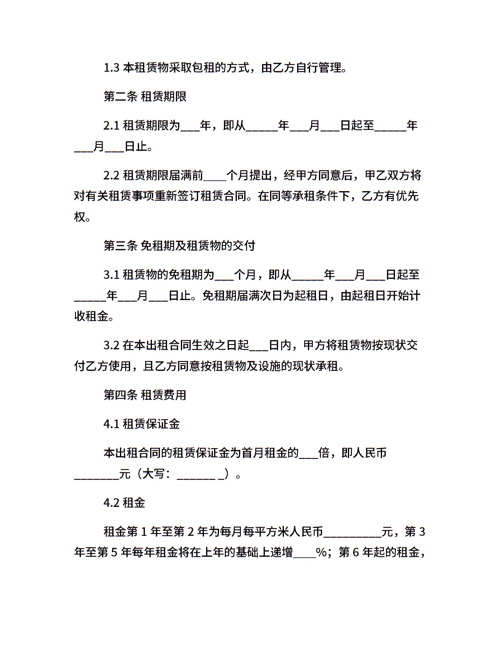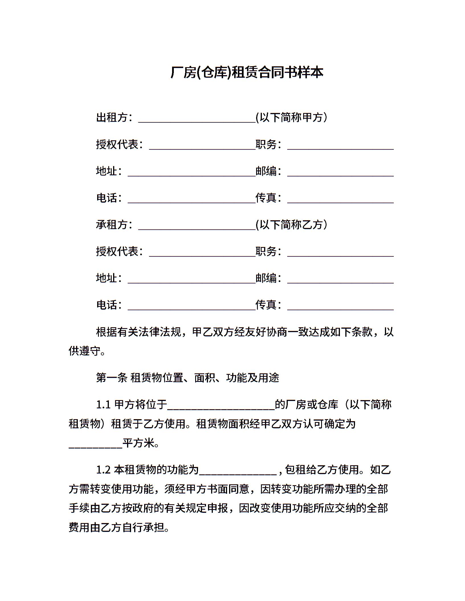 厂房(仓库)租赁合同书样本