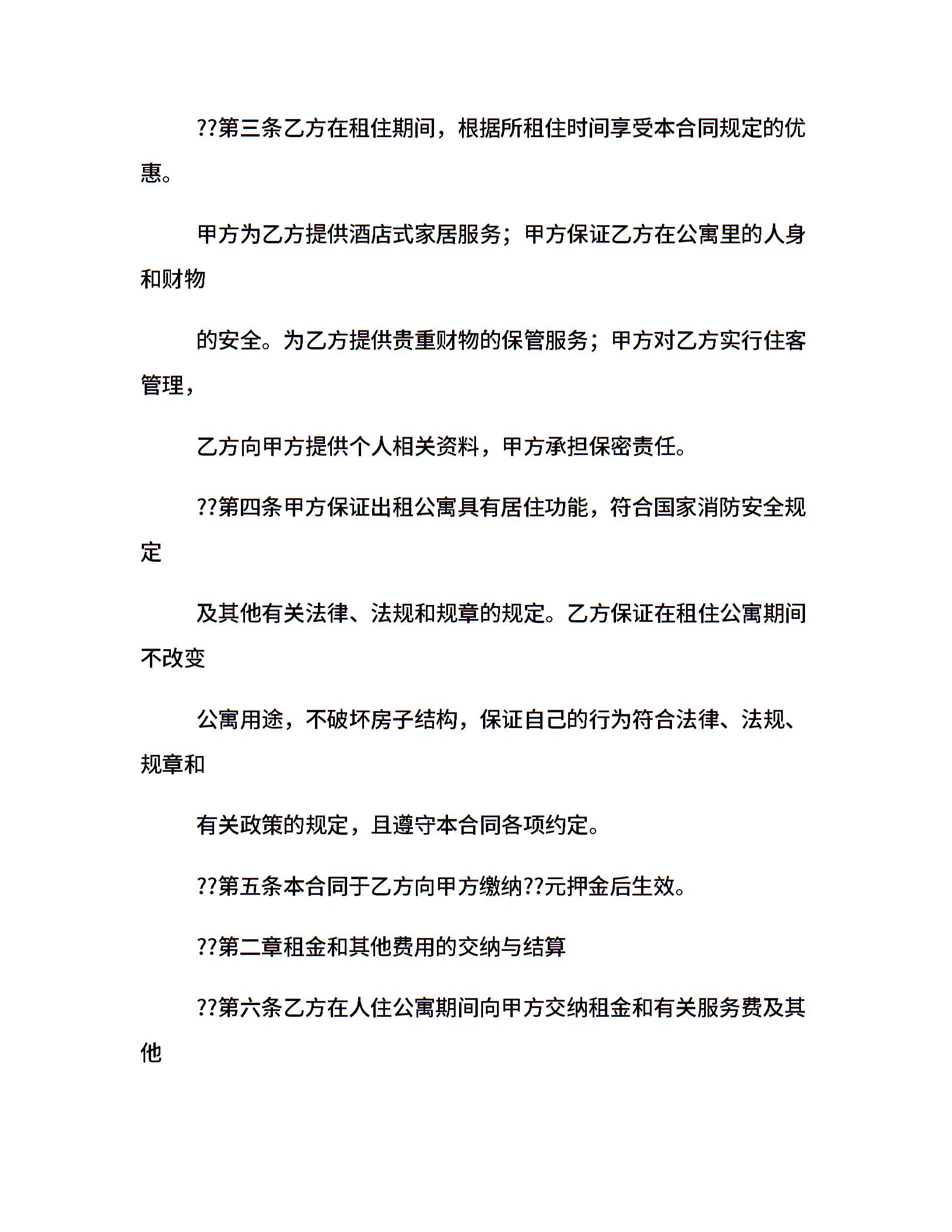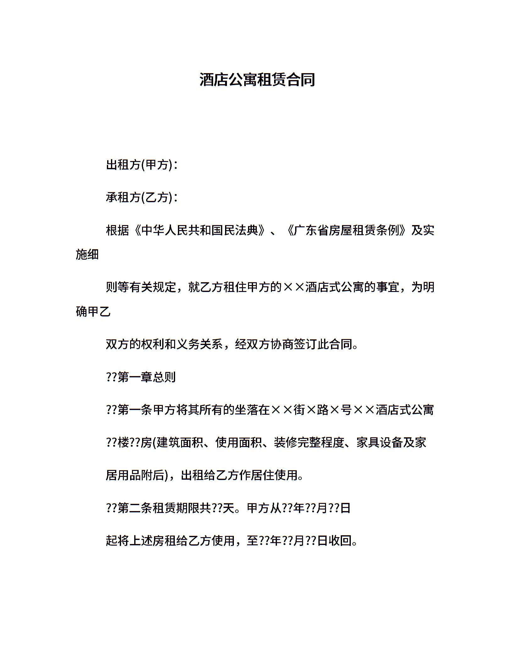 酒店公寓租赁合同