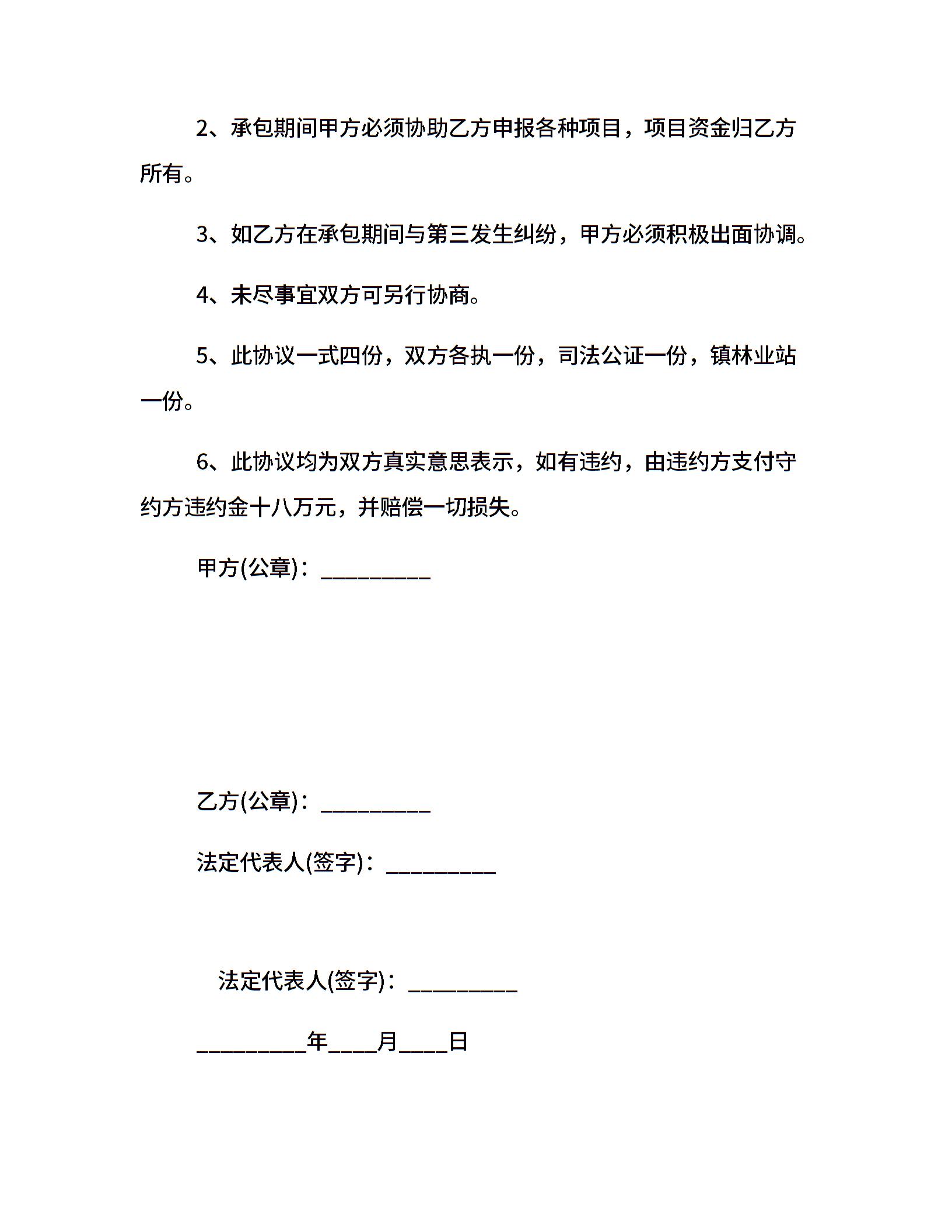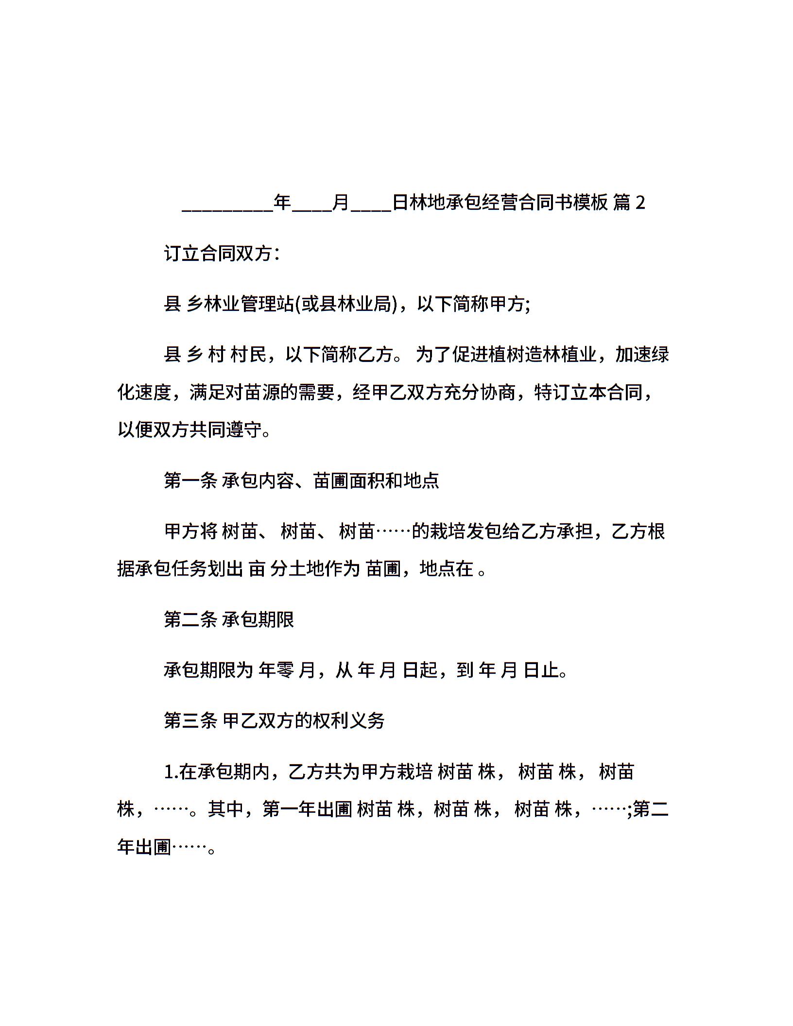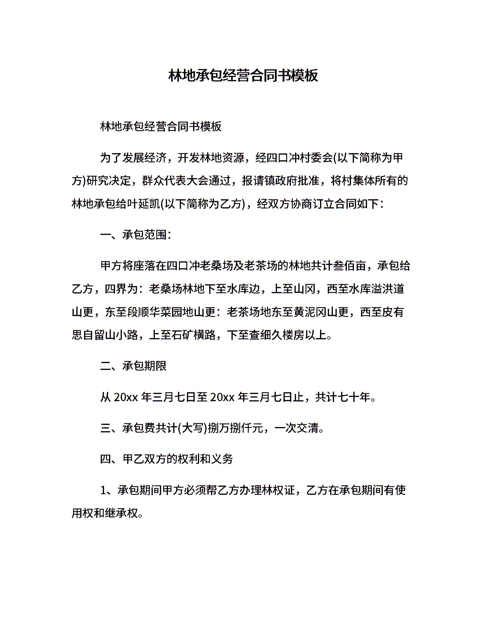 林地承包经营合同书模板