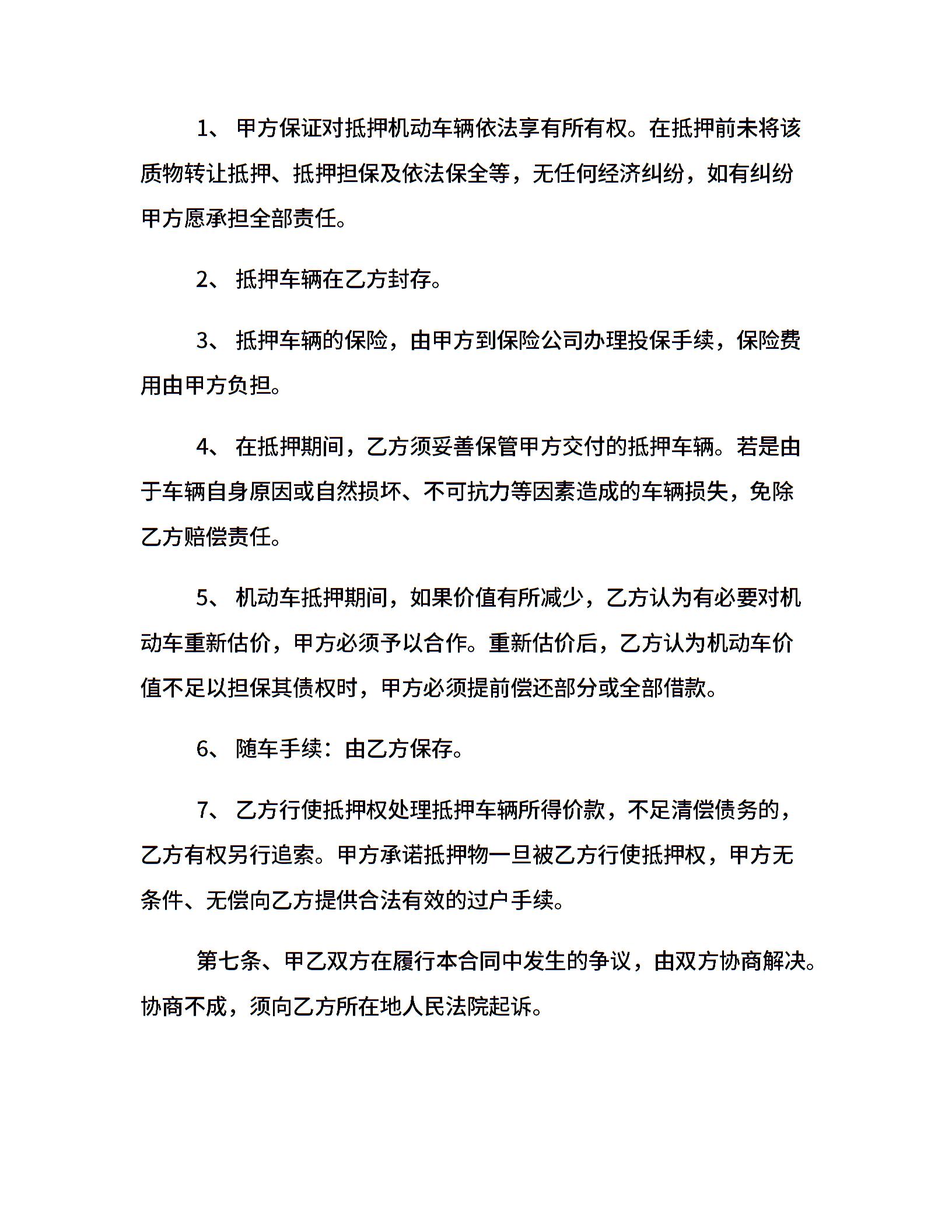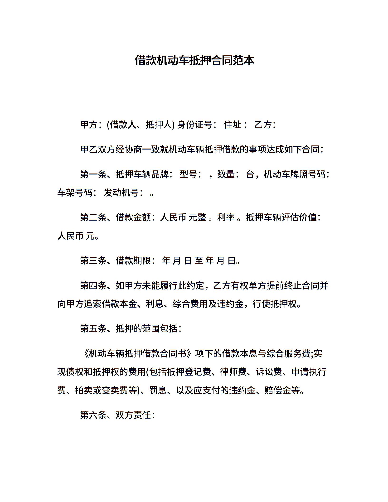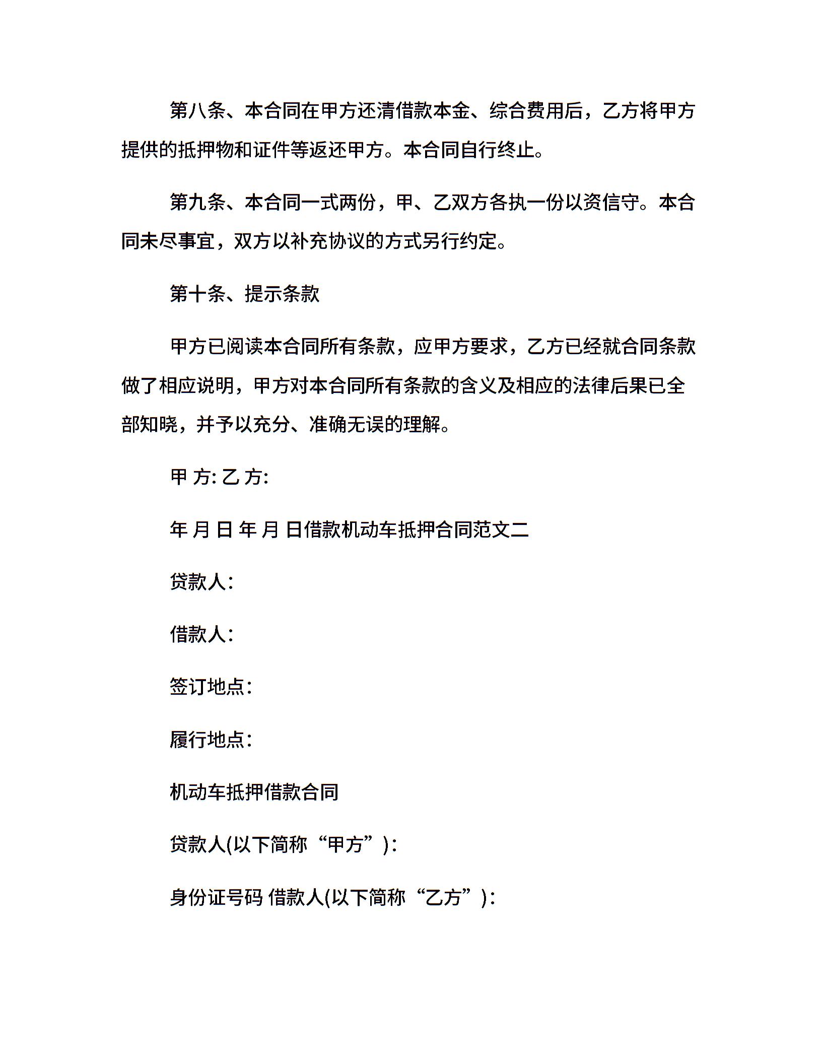 借款机动车抵押合同范本