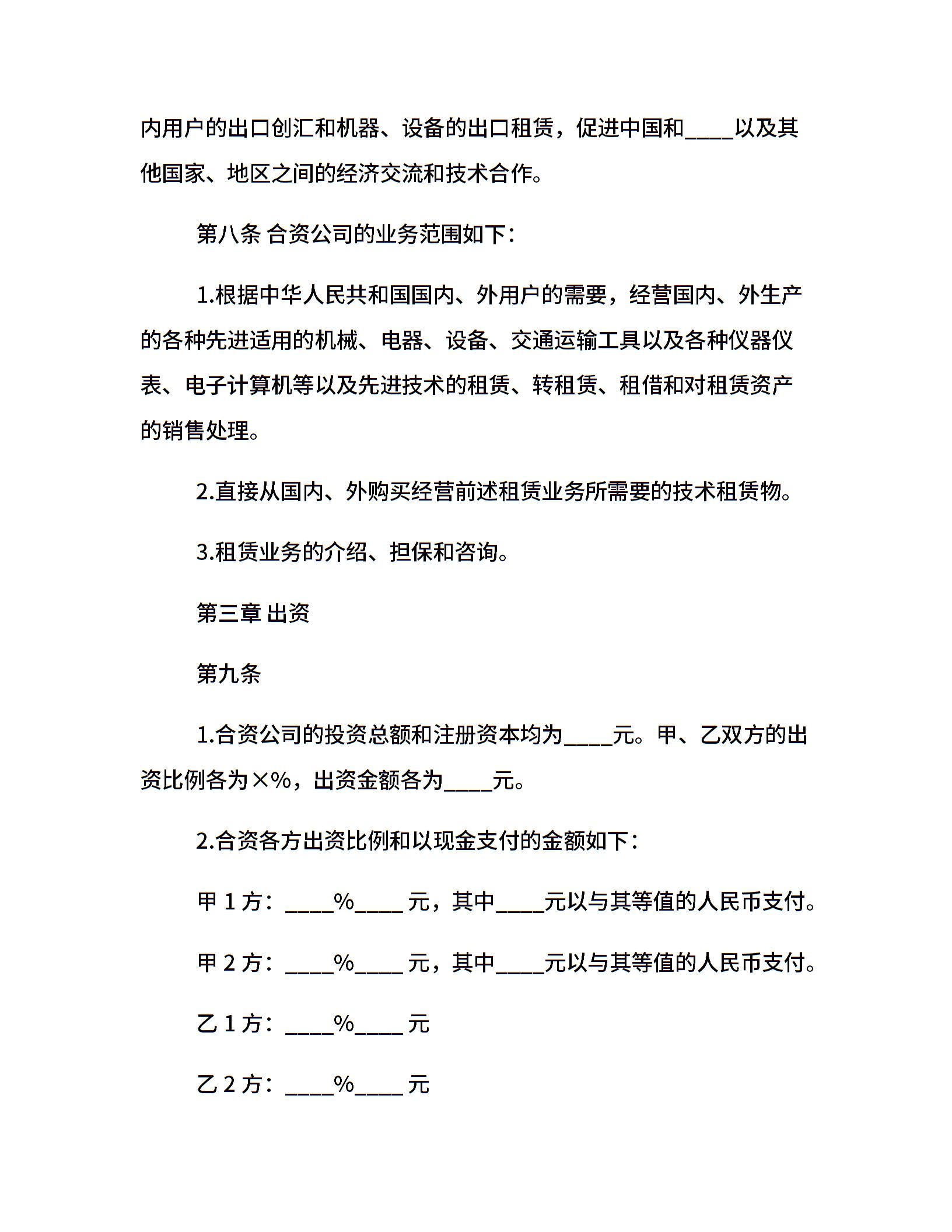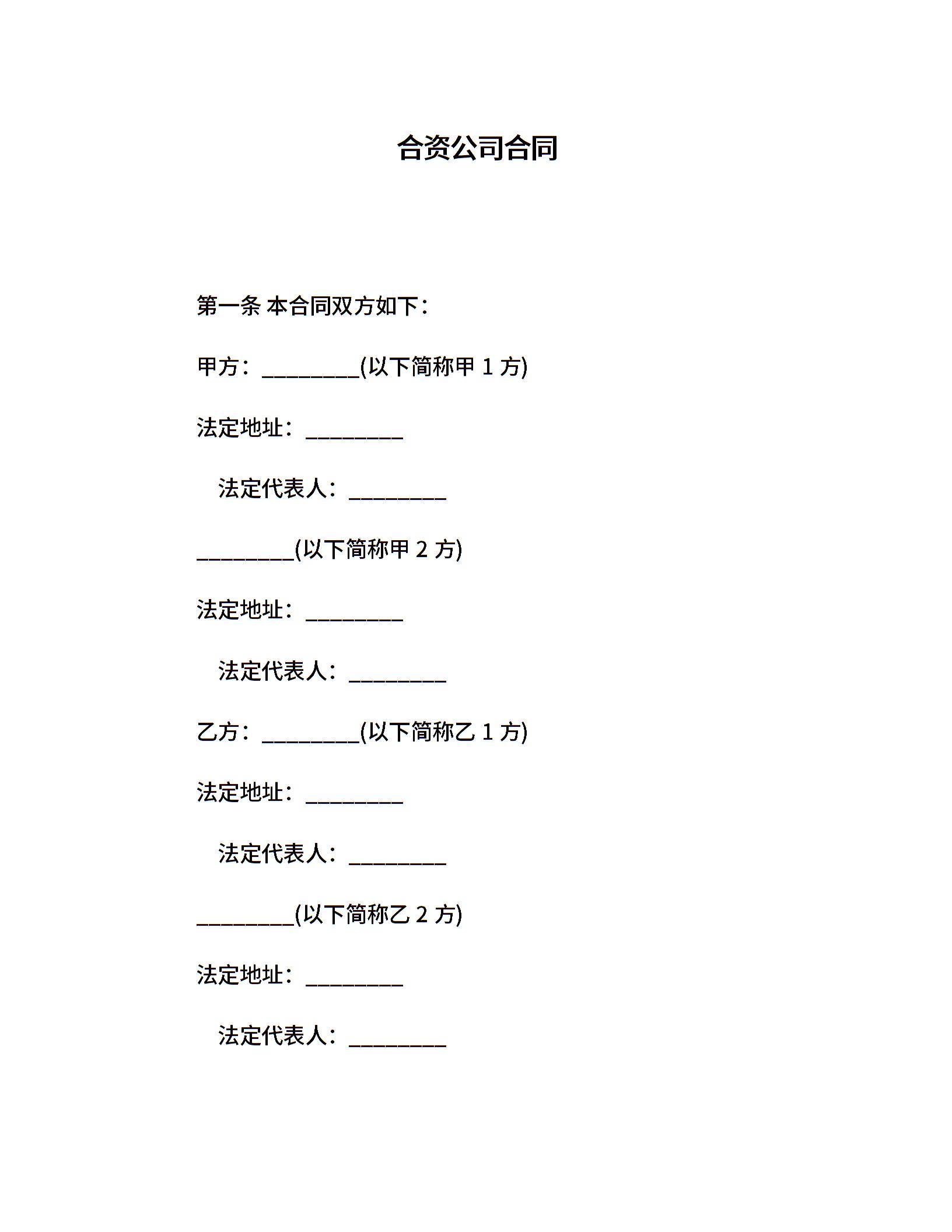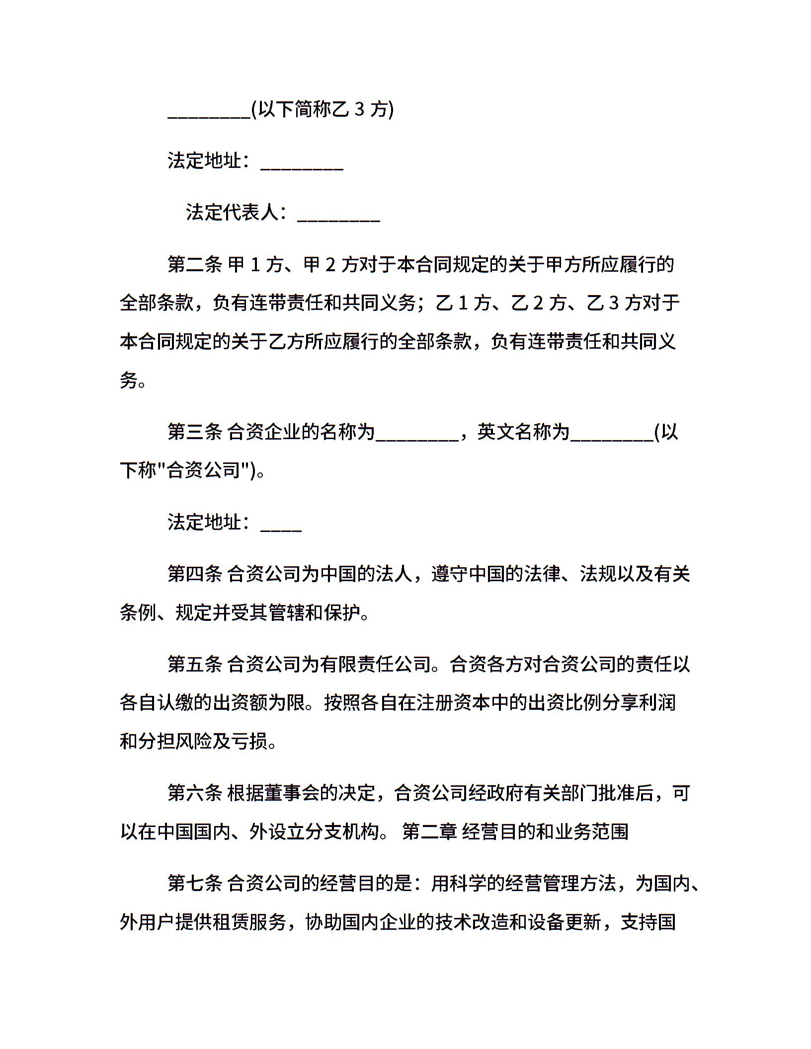 合资公司合同